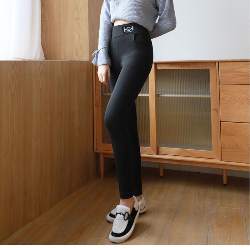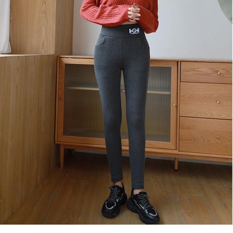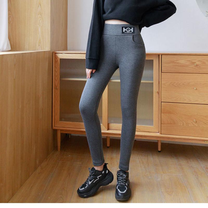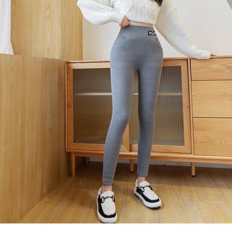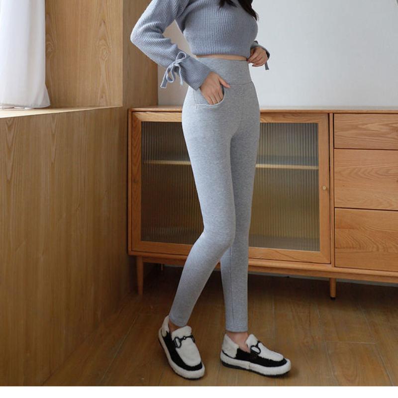 Зимние женские леггинсы однотонные теплые утолщенные с высокой талией, поддерживающие ягодицы, эластичные прогулочные брюки с карманом