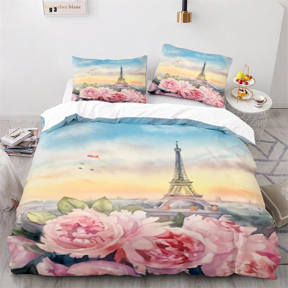 Париж Эйфелева башня тематический комплект пододеяльников для пар городской пейзаж покрывало романтическое полиэстеровое покрывало розовый цветочный король