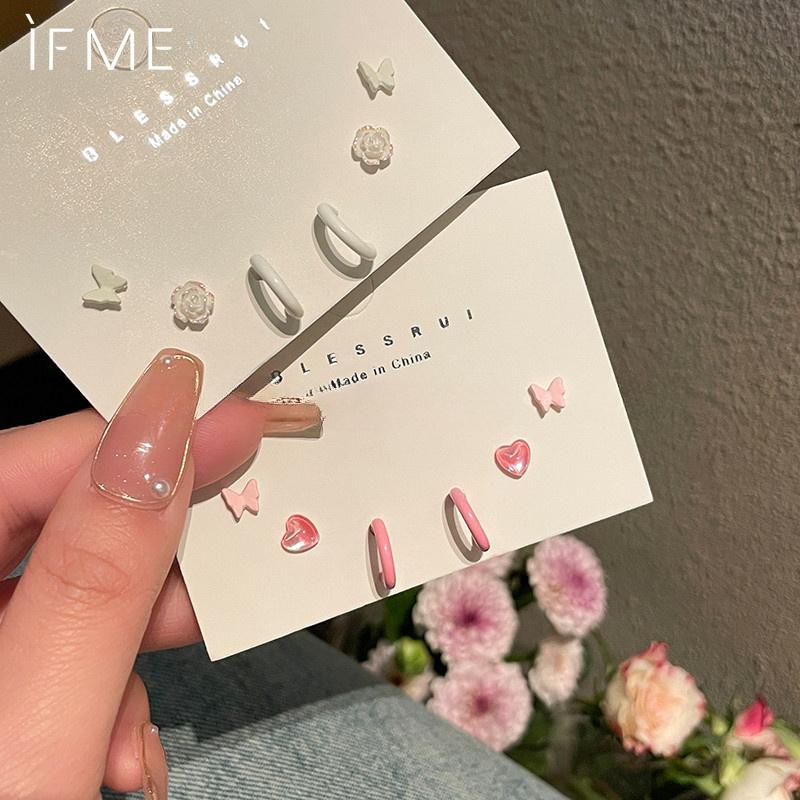 IF ME серьги-гвоздики в виде бабочки для женщин, розовые серьги-кольца в форме цветка для пирсинга в форме сердца C ювелирные изделия — купить товар онлайн с бесплатной доставкой по всему миру!