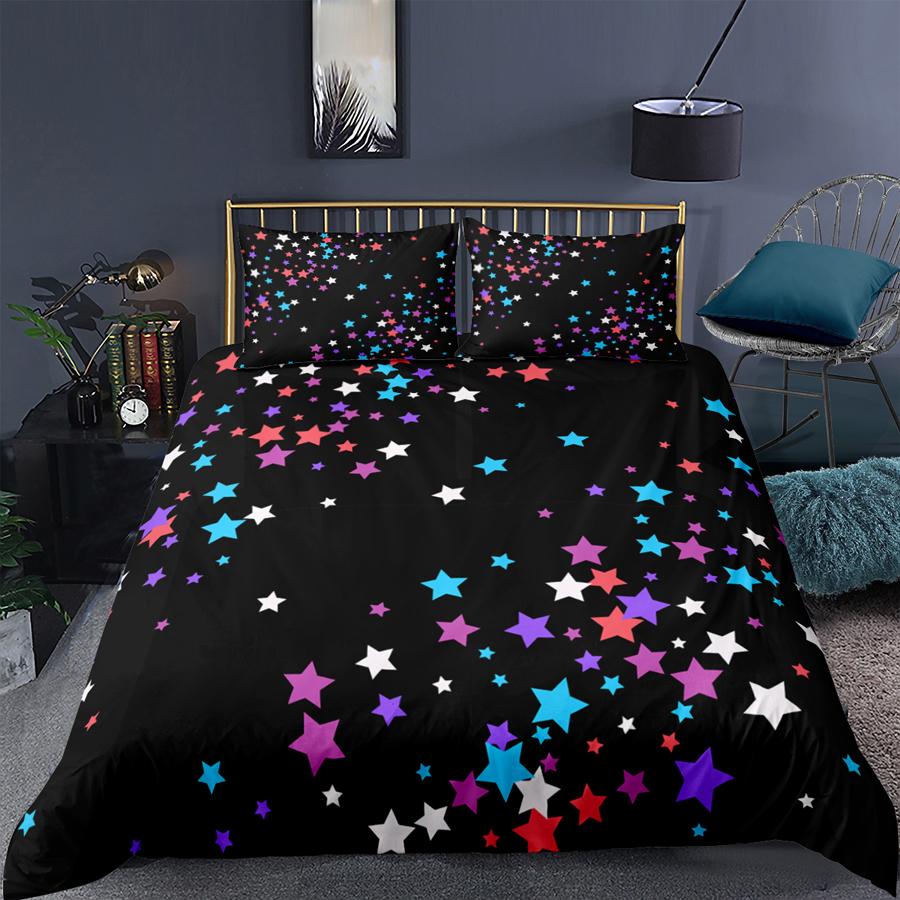 Комплект постельного белья с геометрическим принтом 3D, роскошный, красочный, яркий, со звездами, пододеяльник, комплект постельного белья размера «king size», полиэстеровое одеяло для ребенка, девочки-подростка