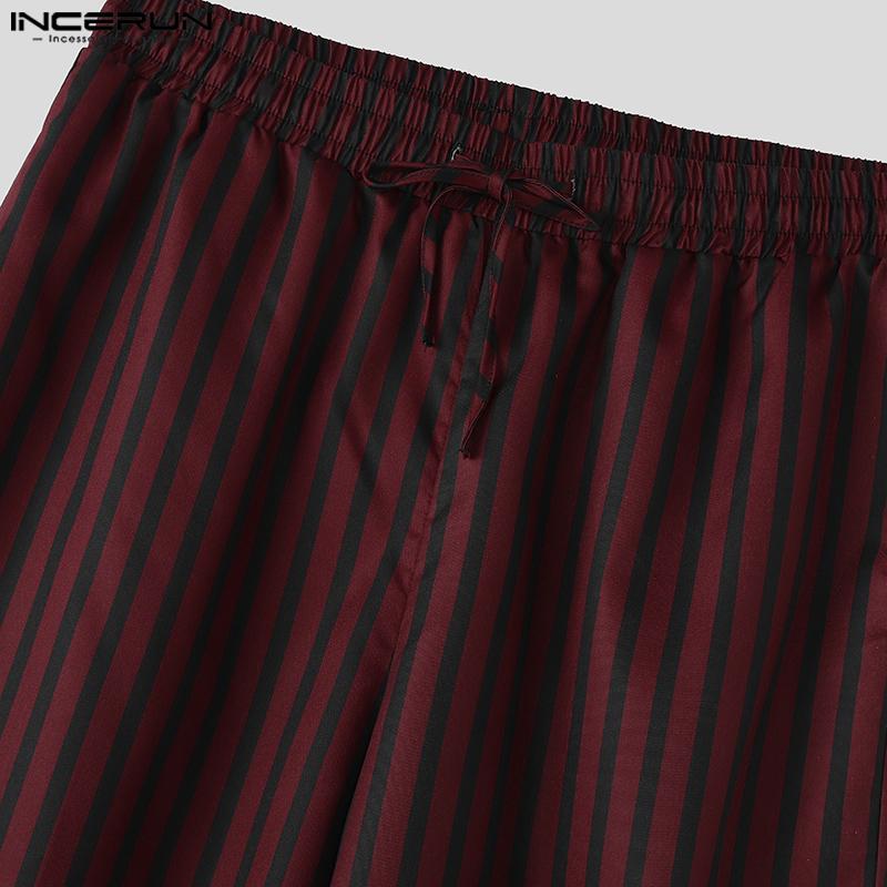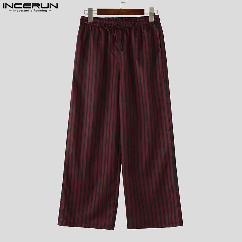 INCERUN Мужские полосатые длинные широкие брюки с эластичной резинкой на талии