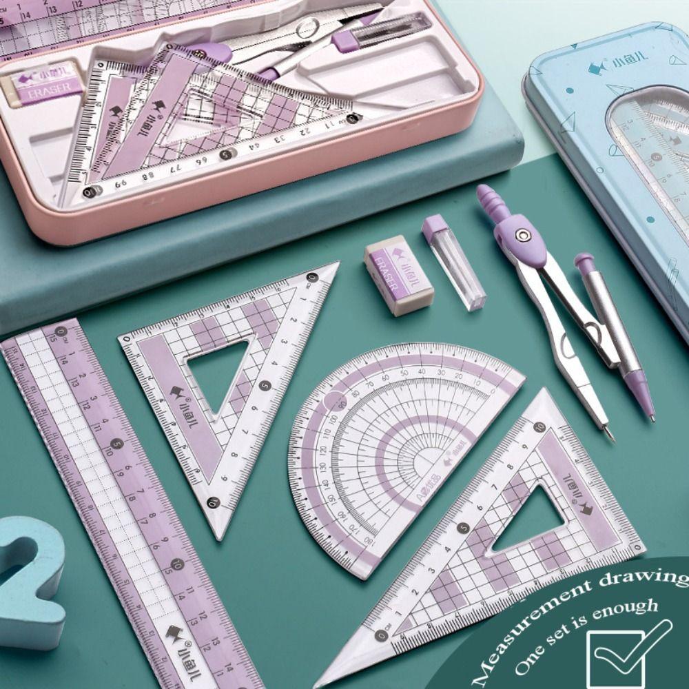 7/8 шт. Прозрачный набор линеек и циркулей с ручкой для подписи Измерительная линейка и циркуль Набор для студентов