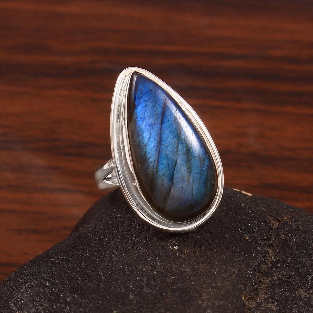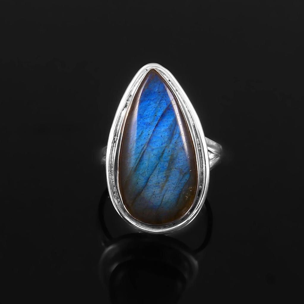 Кольцо ручной работы из цельного серебра 925 пробы с драгоценным камнем лабрадоритом, эффектное женское кольцо, подарок для нее.