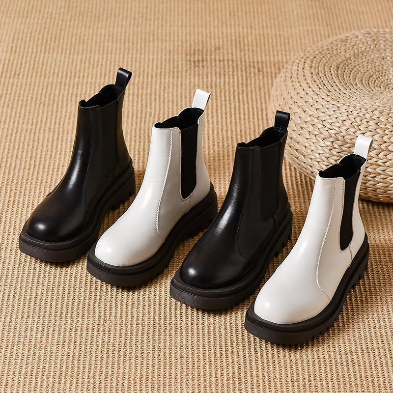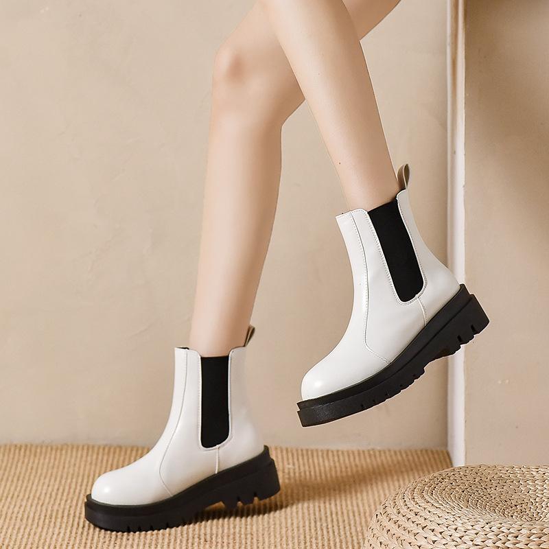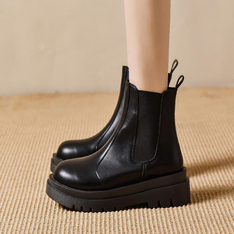 Осень и зима новые женские ботинки Martin корейской версии с круглым носком и эластичной подошвой короткие ботинки удобные ботинки-сигареты на толстой подошве женские