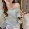Футболка с открытыми плечами и длинными рукавами для ранней весны и осени, женская базовая рубашка свободного кроя, можно носить как верхнюю одежду