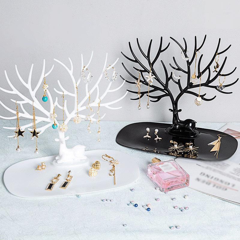 2. Держатель для ювелирных изделий в виде дерева с множеством разветвленных рогов может иметь разную высоту для подвешивания ожерелий и браслетов, а широкое основание обеспечивает устойчивую платформу для тяжелых украшений.