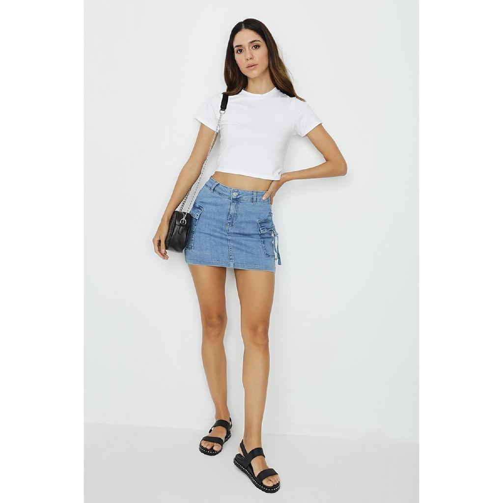 Женская синяя джинсовая мини-юбка с карманами-карго — купить товар онлайн с бесплатной доставкой до всему миру!