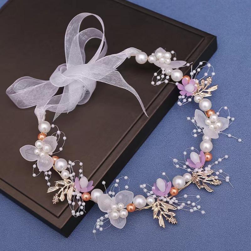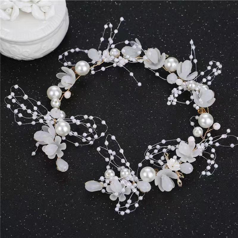 Элегантная свадебная повязка на голову для девочек, головной убор с имитацией жемчуга, цветочный венок, гирлянда для невесты, обруч на голову, свадебные повязки на голову, украшения для волос