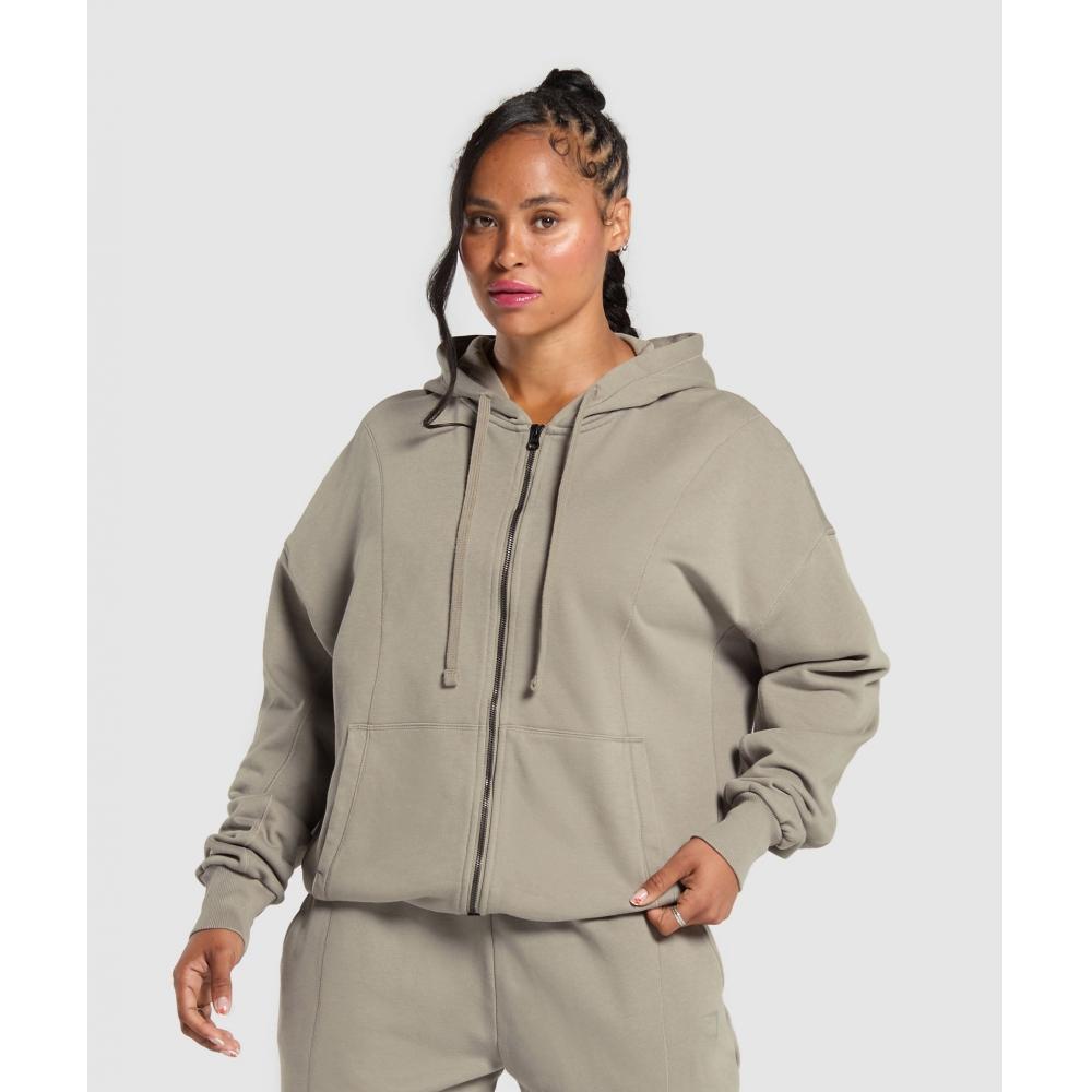 Gymshark Power Oversized Zip Hoodie Linen Brown Acid Wash B9a6l Ncbb