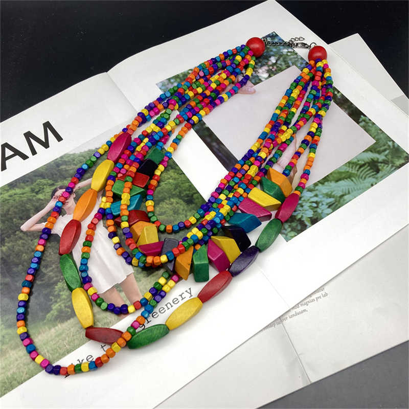 Пляжный Пасторальный Стиль Дерево Этнический Стиль Ретро Геометрия Цветной Длинное Ожерелье Многослойное
