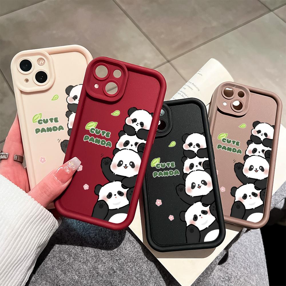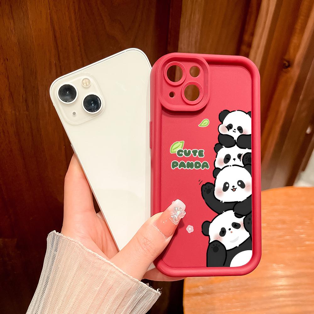 Для iPhone 16 15 14 13 12 11 Pro Max XS Max XR X SE 8 7 мягкий силиконовый чехол с милым рисунком панды для защиты линз