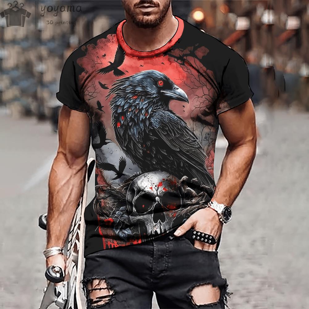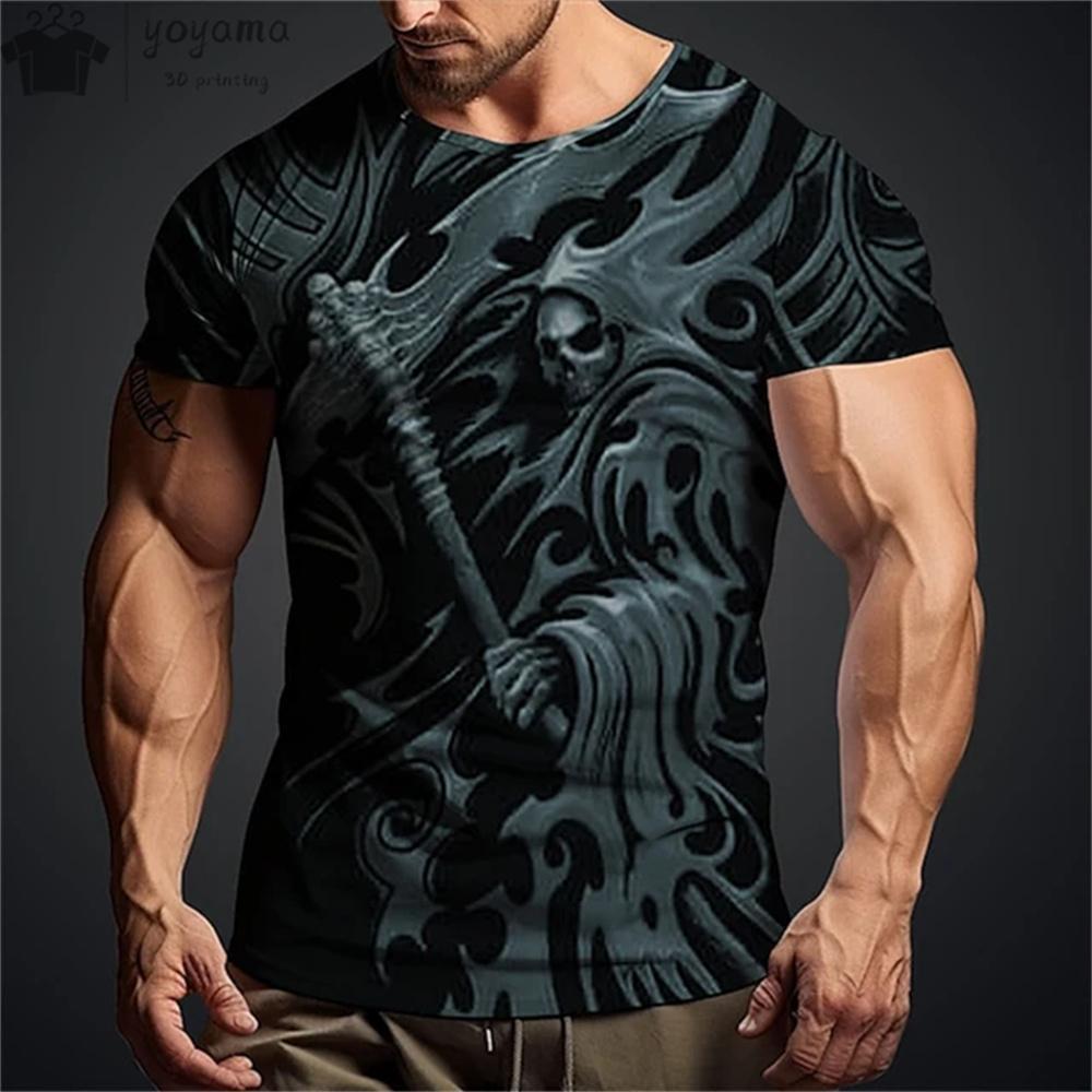 Винтажный принт с изображением черепа ужасов, модные уличные футболки для мужчин, 3D-принт с черепом, футболка большого размера с круглым вырезом, футболки с коротким рукавом