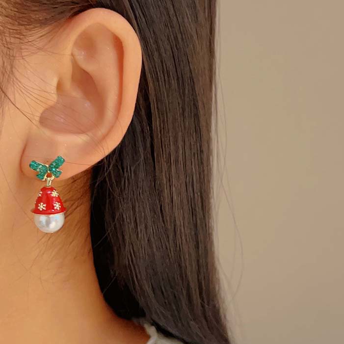 Модные рождественские зеленые серьги-бантики для ушей, женские изысканные маленькие серьги-колокольчики, рождественские подарки