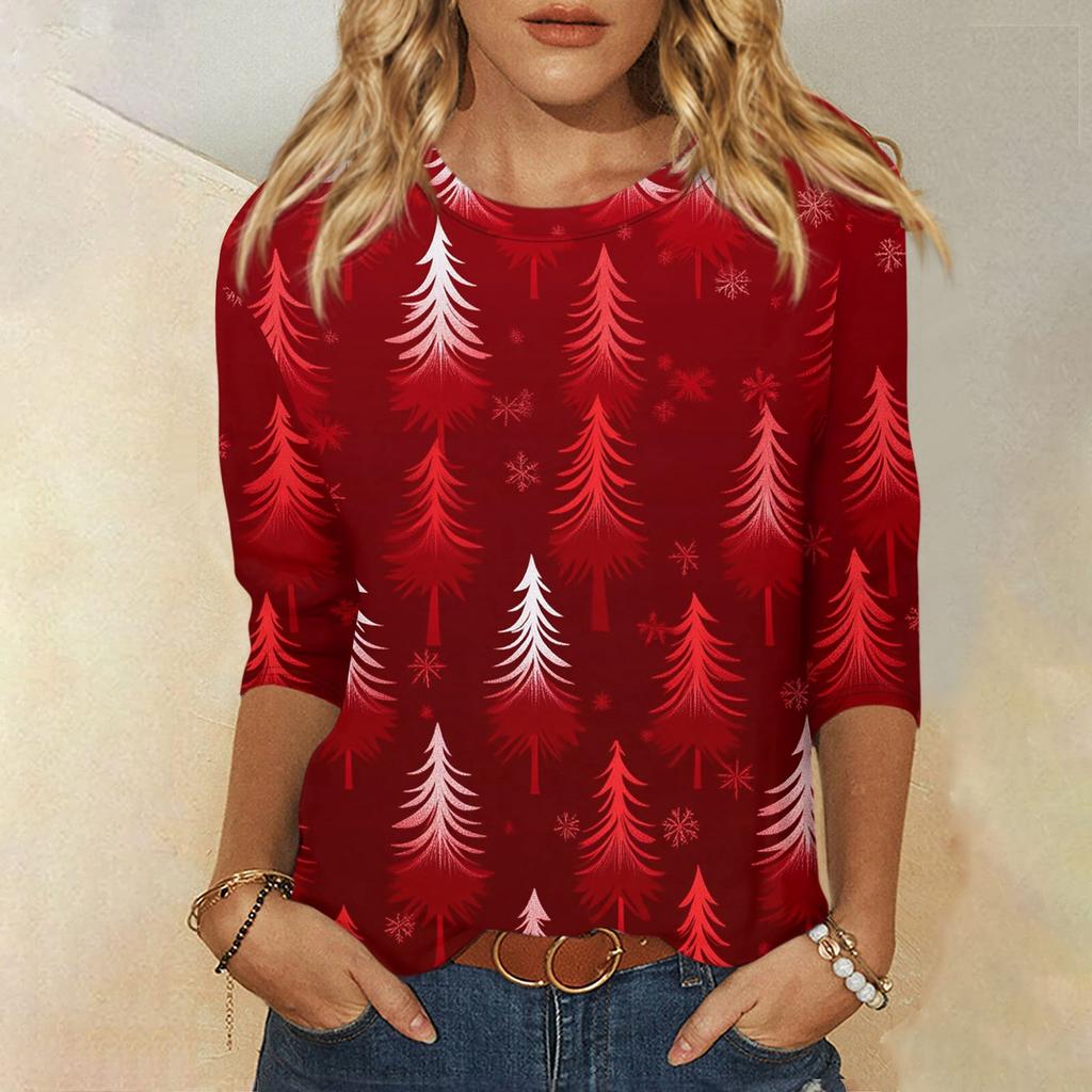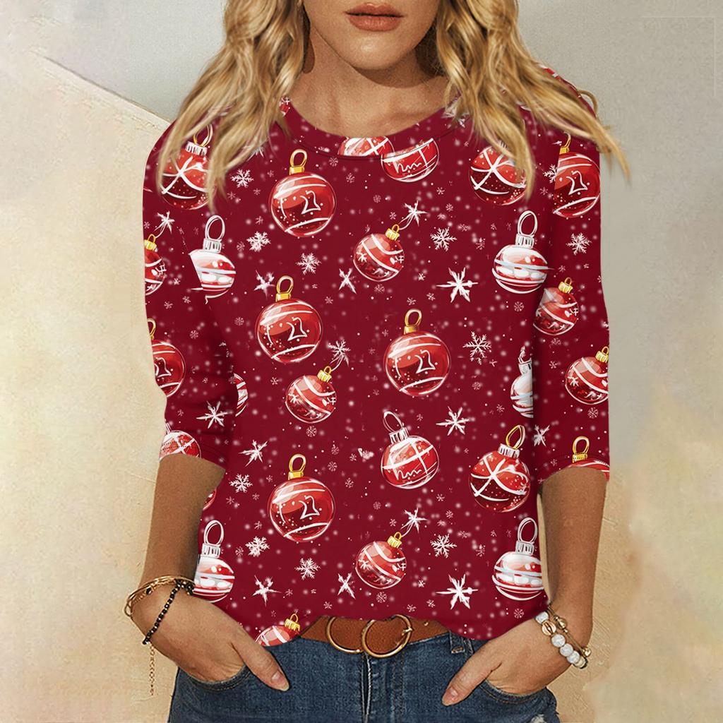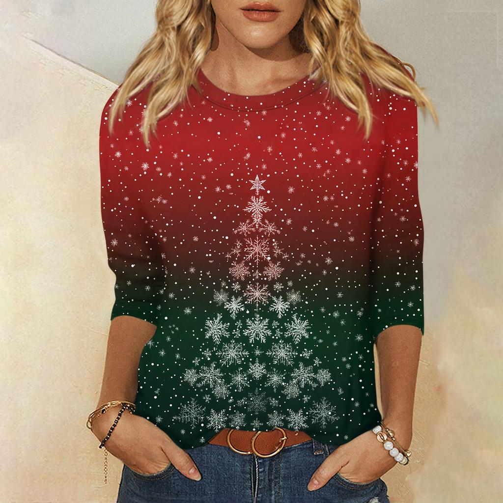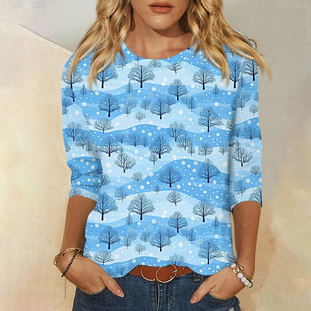 Рубашки с рукавом 3/4 для женщин Милые рождественские принты Графические футболки Блузки Повседневные Большие размеры Базовые топы Пуловеры