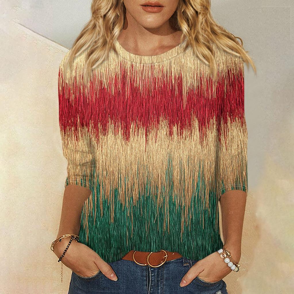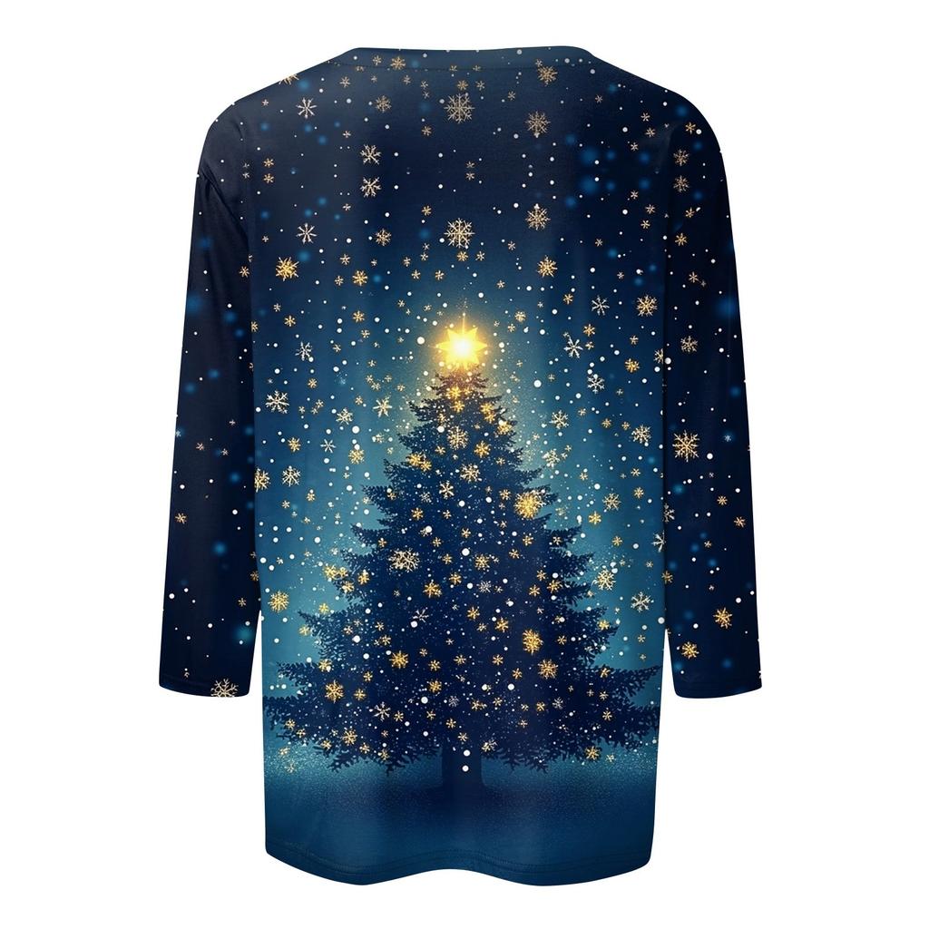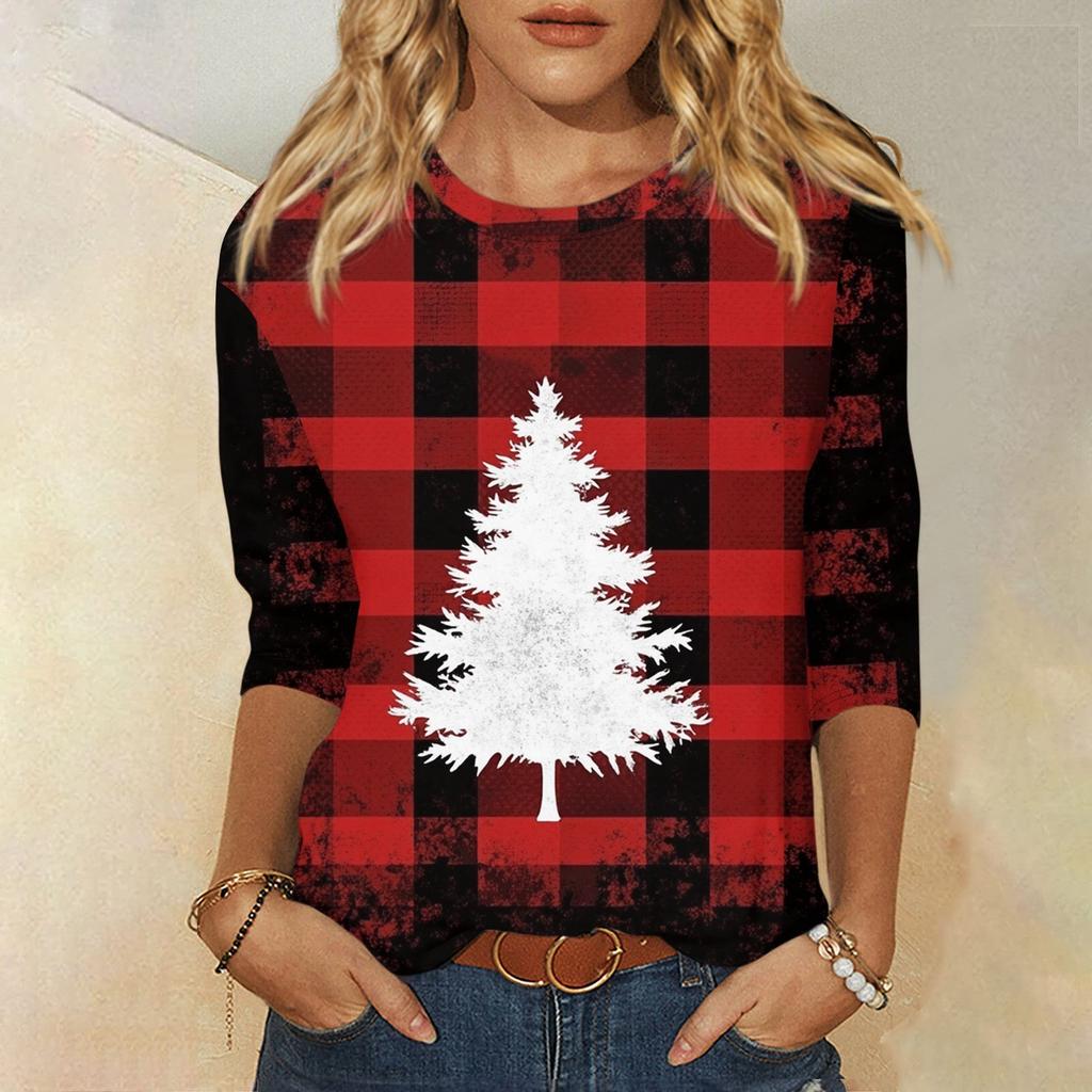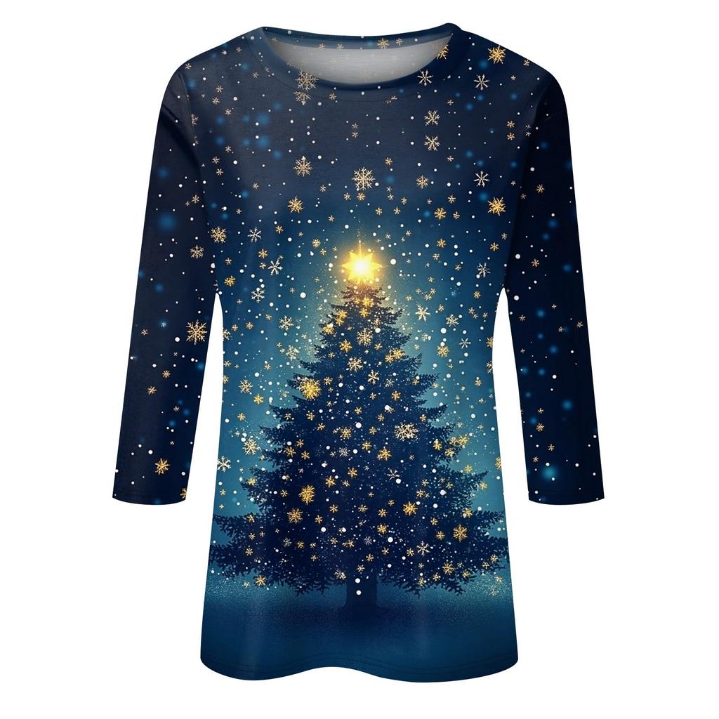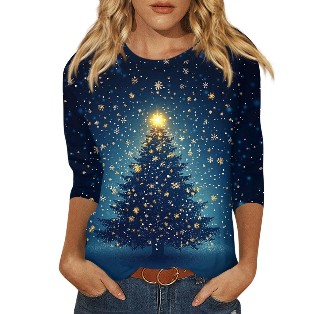 Рубашки с рукавом 3/4 для женщин Милые рождественские принты Графические футболки Блузки Повседневные Большие размеры Базовые топы Пуловеры