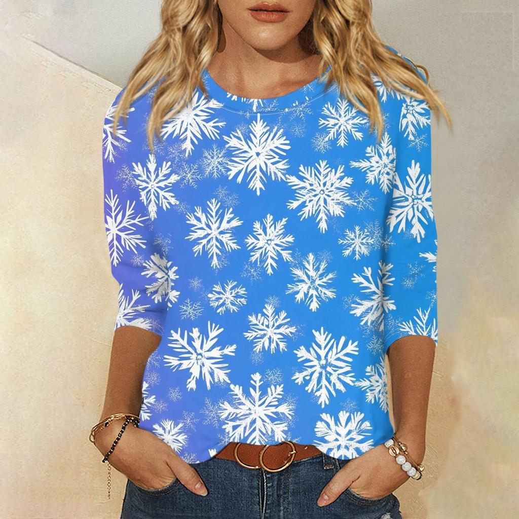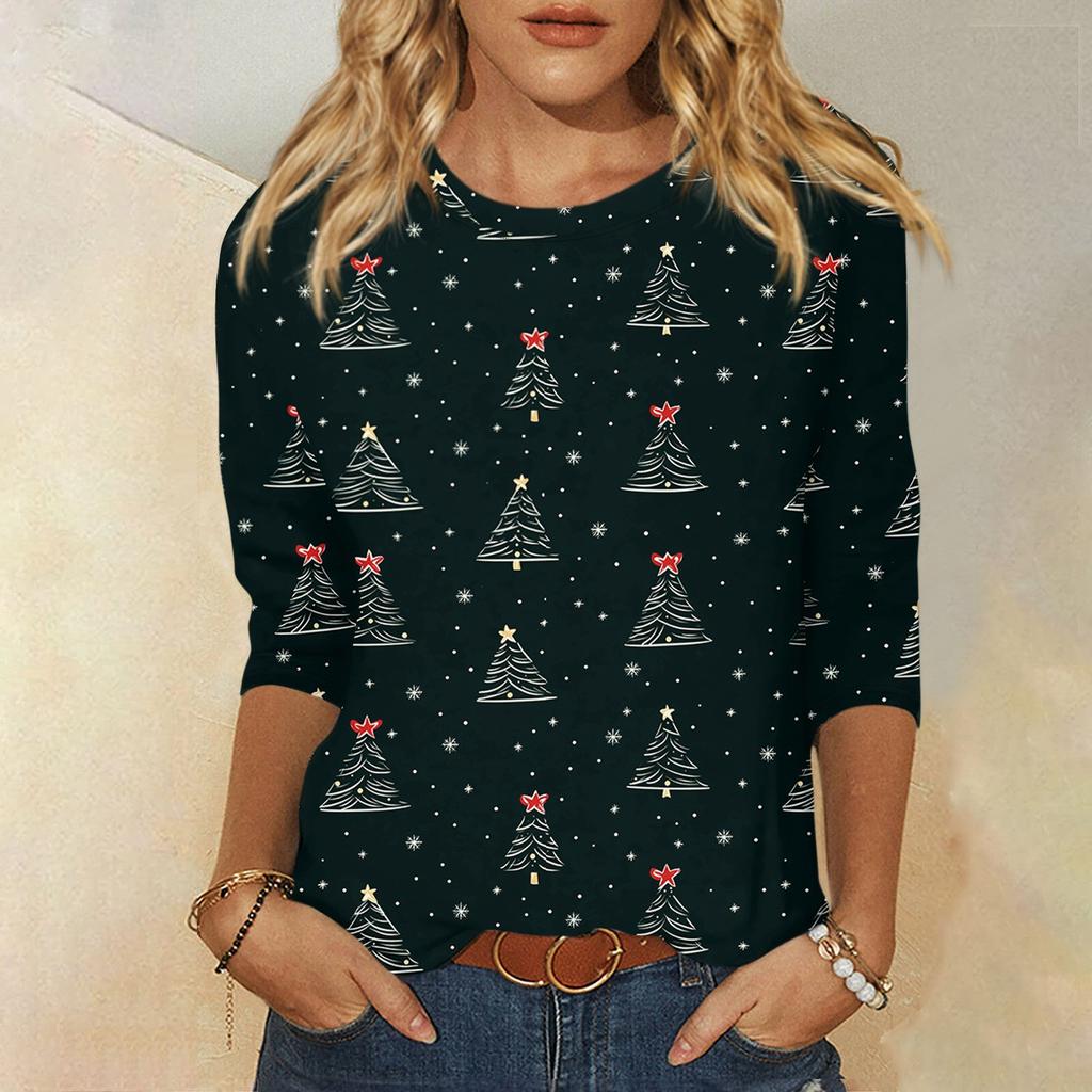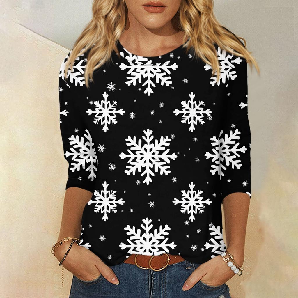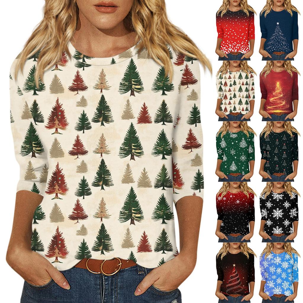 Рубашки с рукавом 3/4 для женщин Милые рождественские принты Графические футболки Блузки Повседневные Большие размеры Базовые топы Пуловеры