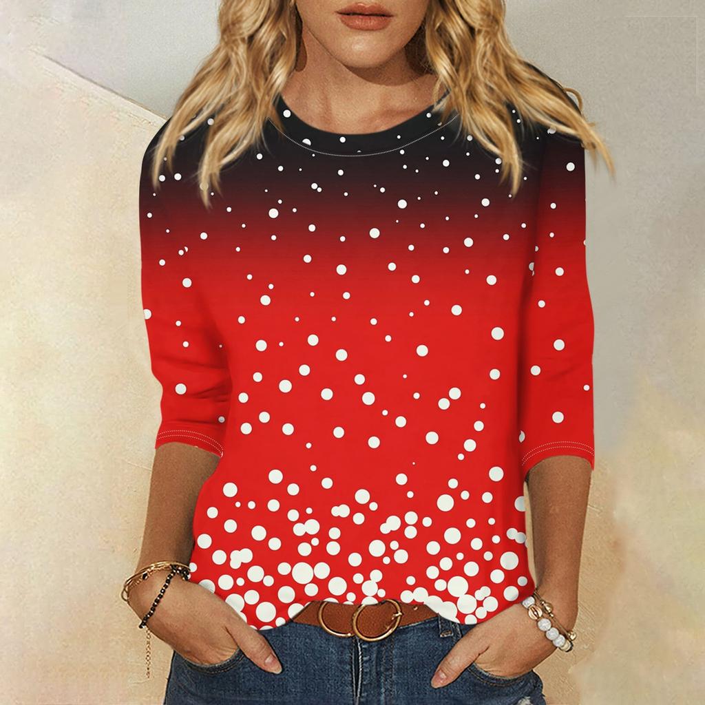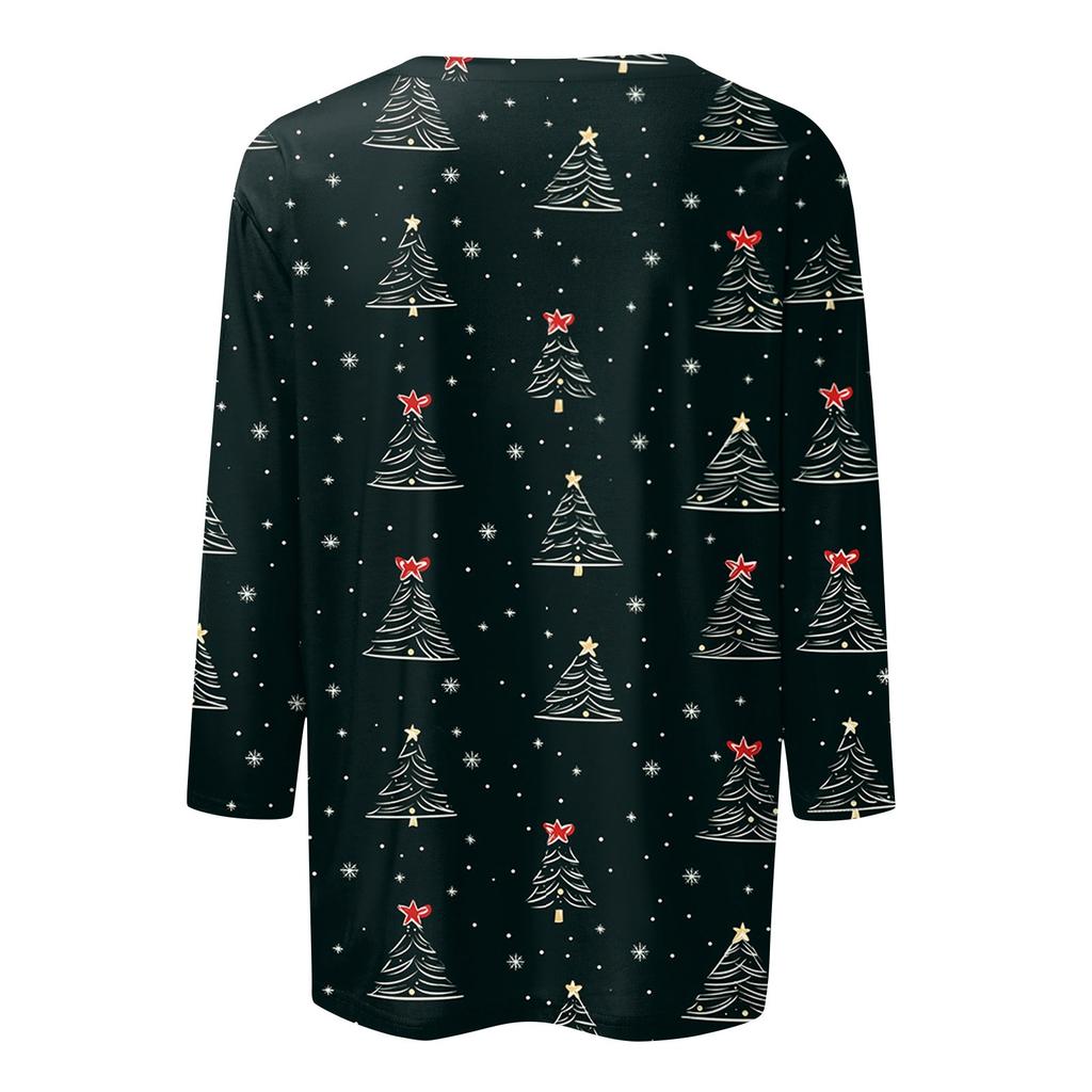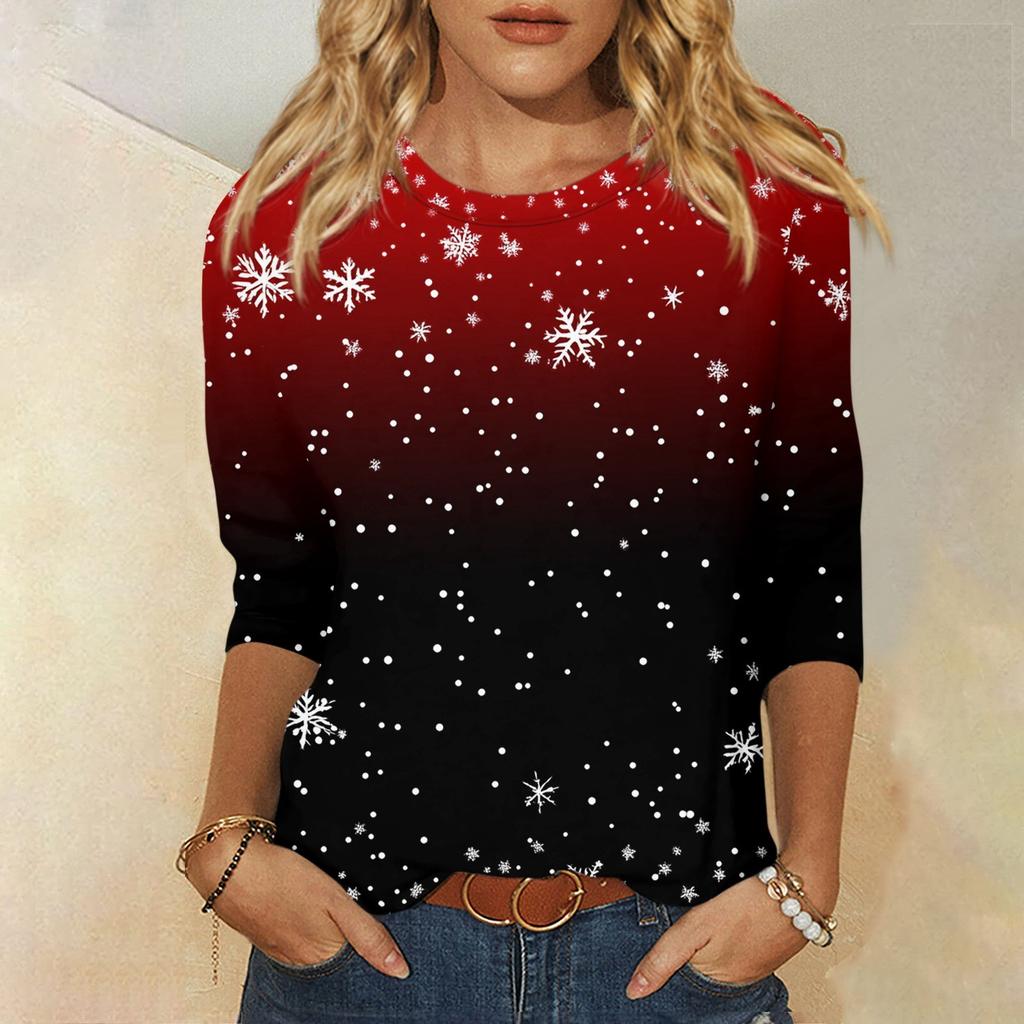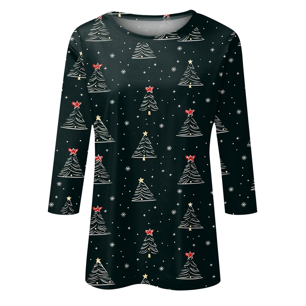 Рубашки с рукавом 3/4 для женщин Милые рождественские принты Графические футболки Блузки Повседневные Большие размеры Базовые топы Пуловеры