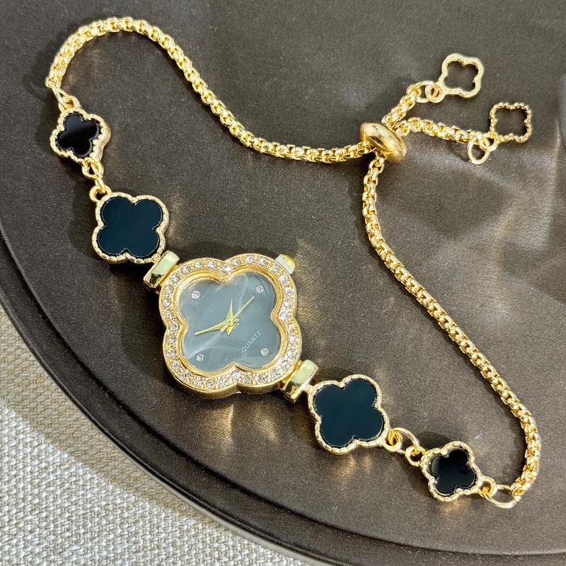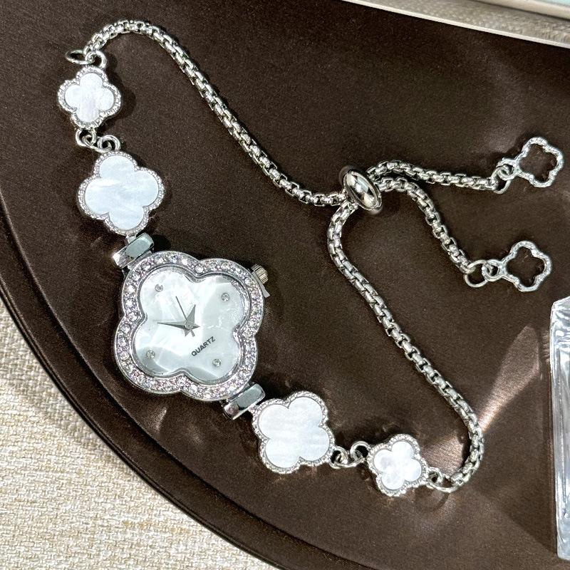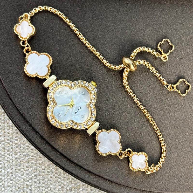 Новые кварцевые часы Pulling с четырехлистным клевером и бриллиантовой отделкой для женщин, легкие роскошные модные женские студенческие часы-браслет