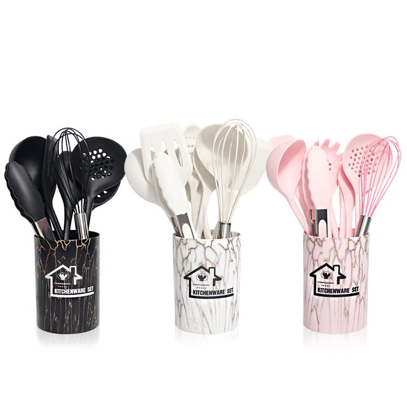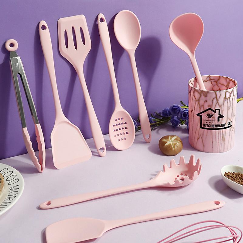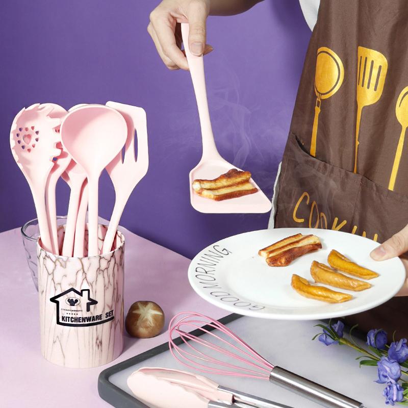 10 шт. розовый силиконовый набор кухонных принадлежностей с антипригарным покрытием, инструменты для выпечки, кухонная утварь, лопаточка, ложка, щипцы для еды, кухонный набор с коробкой