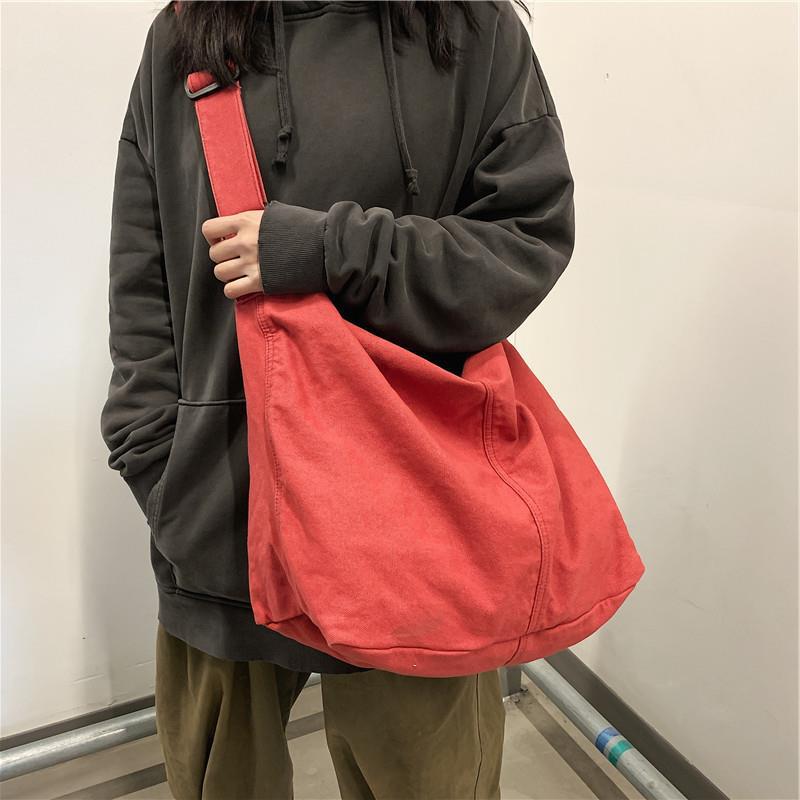 Сумка через плечо, студенческая сумка для занятий, двойное назначение в стиле ins, однотонная японская холщовая сумка, женская сумка через плечо большой вместимости