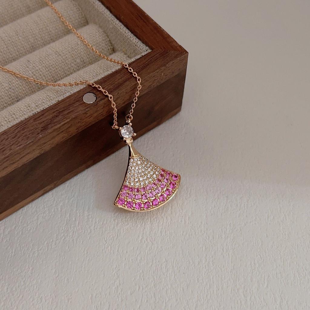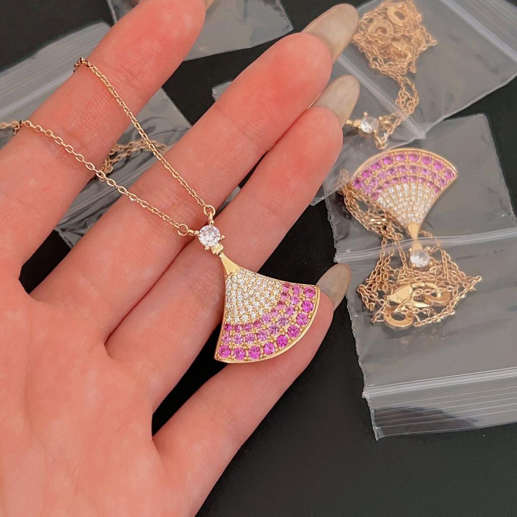 Ожерелье из розового бриллианта, легкое, роскошное, универсальное, подвеска в форме веера с крупным розовым бриллиантом, цепочка на ключицу, женские аксессуары высокого класса