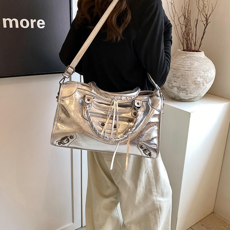 Популярная в этом году женская сумка с заклепками 2024 года, новая нишевая сумка в стиле ретро-локомотива, универсальная сумка через плечо большой вместимости