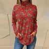 Футболки для женщин, осенние повседневные рубашки с длинными рукавами, толстовка с винтажным принтом, топ с высоким воротом, пуловер