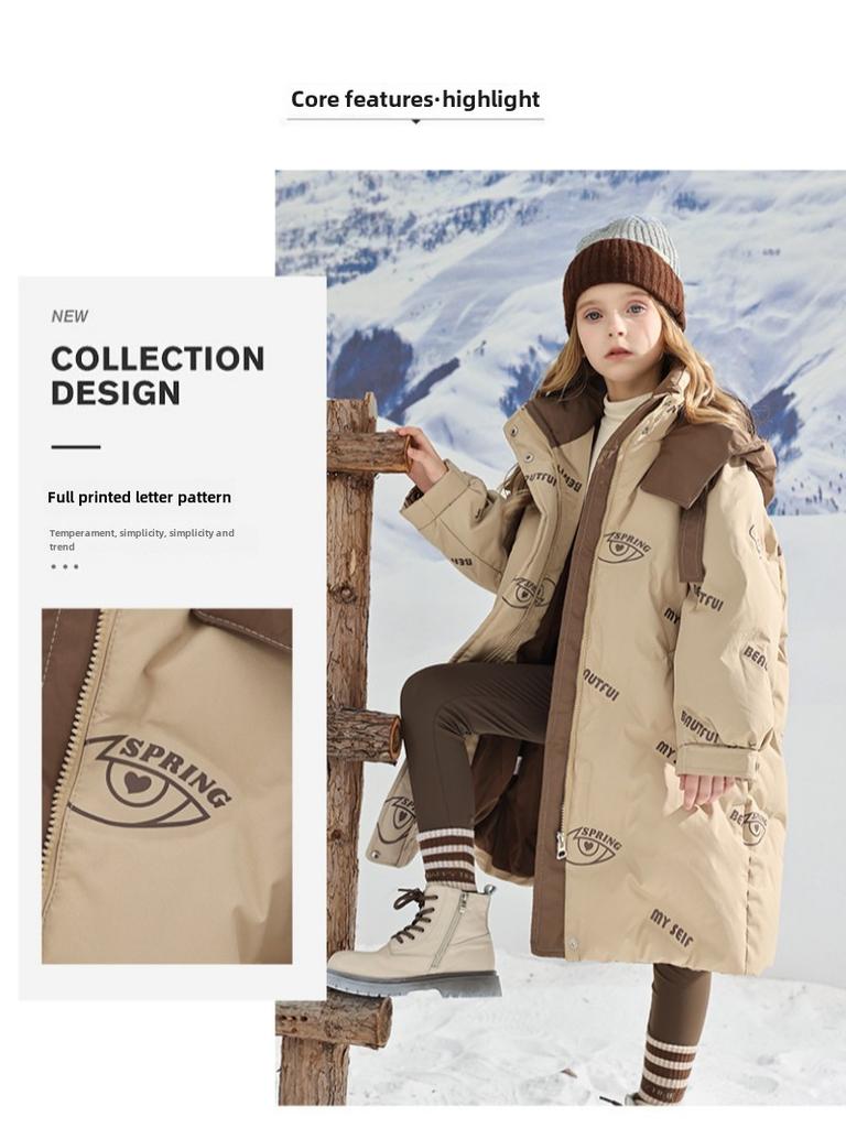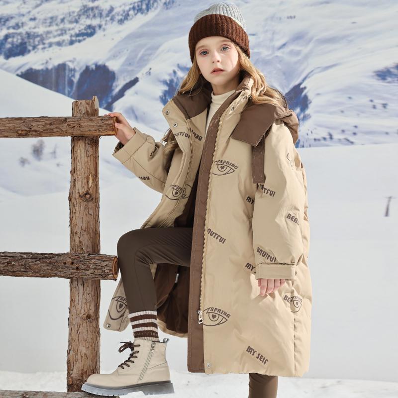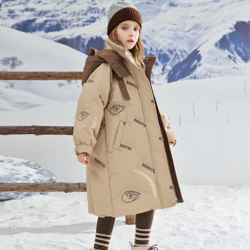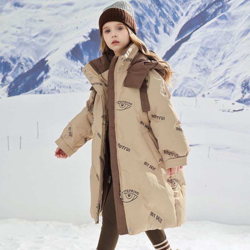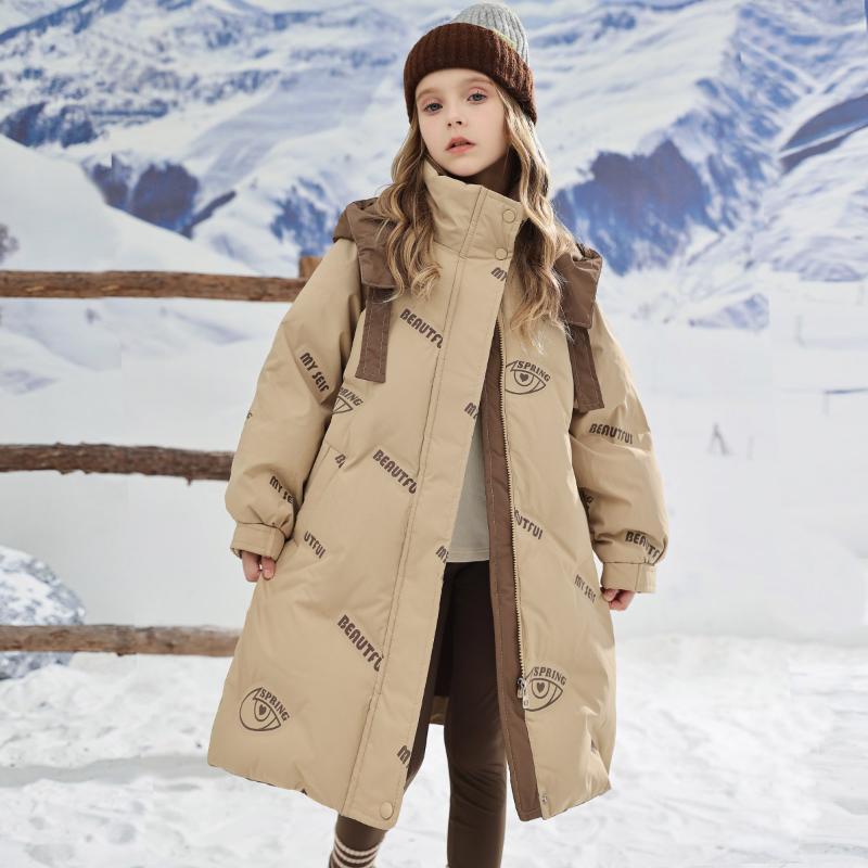 Пуховик для девочек из хлопка, стильная удлиненная хлопковая куртка, зимнее детское зимнее пальто