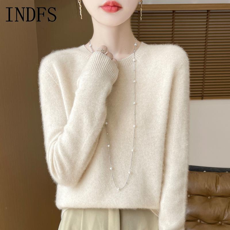 INDFS Женская мода Повседневный Осень Зима Однотонный Принт Длинный Рукав О-Образным Вырезом Свитера — купить товар онлайн с бесплатной доставкой по всему миру!