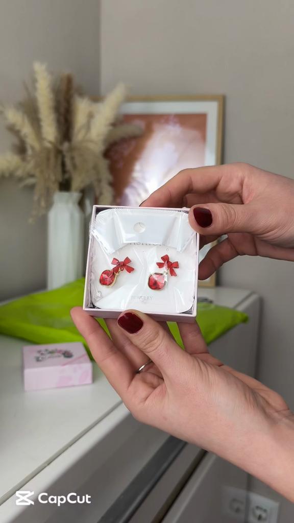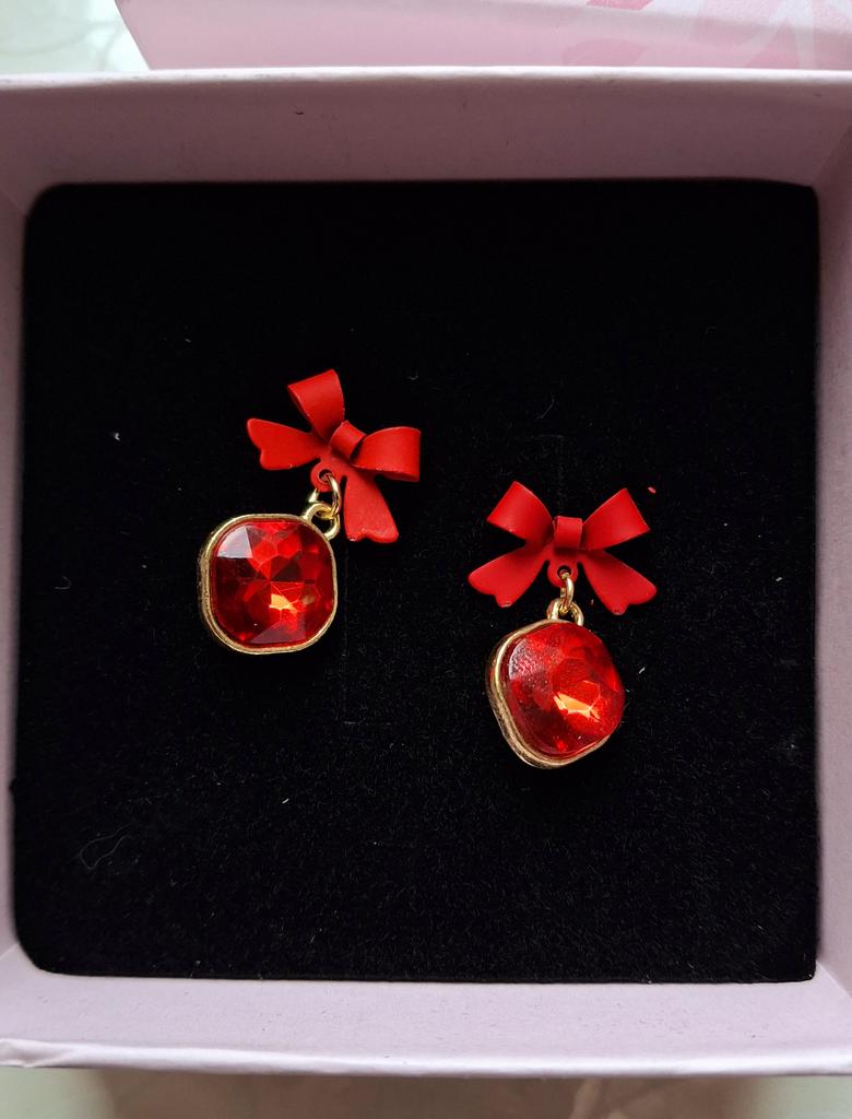 Эти серьги — прекрасный способ добавить яркий акцент в ваш образ. Они сочетают в себе игривость и элегантность, делая их универсальными для различных случаев. Кстати, на выбор у продавца есть и другие цвета. 🔸Основной элемент серег — красные кристаллы, которые привлекают внимание своим ярким цветом и блеском. Они имеют огранку, которая добавляет им сияния. 🔸Миниатюрные бантики над кристаллами придают серьгам игривый и кокетливый вид. Они добавляют нотку женственности и делают дизайн более интересным. 🔸Кристаллы обрамлены золотистой оправой, которая гармонично сочетается с бантиками. Это создает целостный и завершенный вид. 🔸Серьги изготовлены из бижутерного сплава с покрытием, имитирующим золото. 🔸Качество изготовления хорошее, все детали аккуратно выполнены. Рекомендую 👍 Ставлю ⭐ ⭐ ⭐ ⭐ ⭐ Большое спасибо продавцу ❤️ и Joom ❤️
