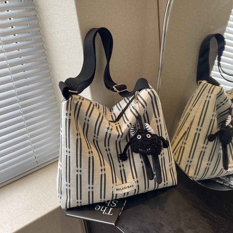 Полосатая холщовая сумка женская 2024 новая модная большая вместительная сумка-мессенджер для поездок на работу повседневная студенческая сумка-тоут