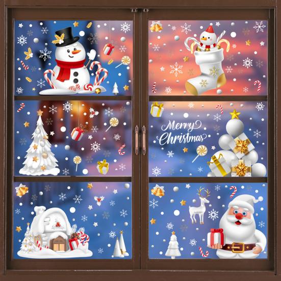 Праздничное разнообразие: Эти наклейки на окна с 9 очаровательными рождественскими рисунками, включая Санта-Клауса, снеговиков и снежинки, оживляют праздничное настроение.. Создайте радостную атмосферу и украсьте свой праздничный интерьер без особых усилий.