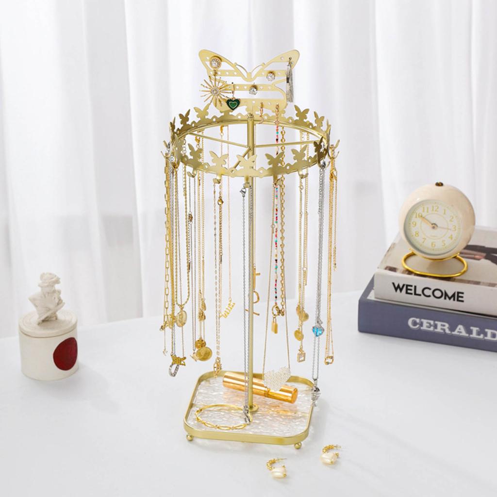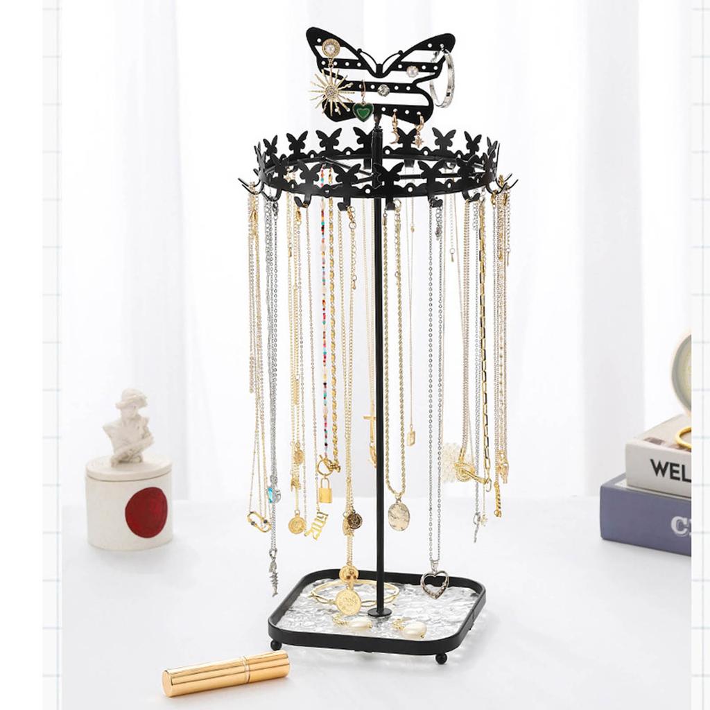 Подходит для размещения в спальнях, на туалетных столиках, в ювелирных магазинах и т. д., обеспечивая удобный способ хранения и демонстрации ожерелий, браслетов, сережек и других ювелирных изделий.