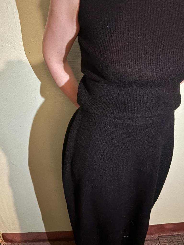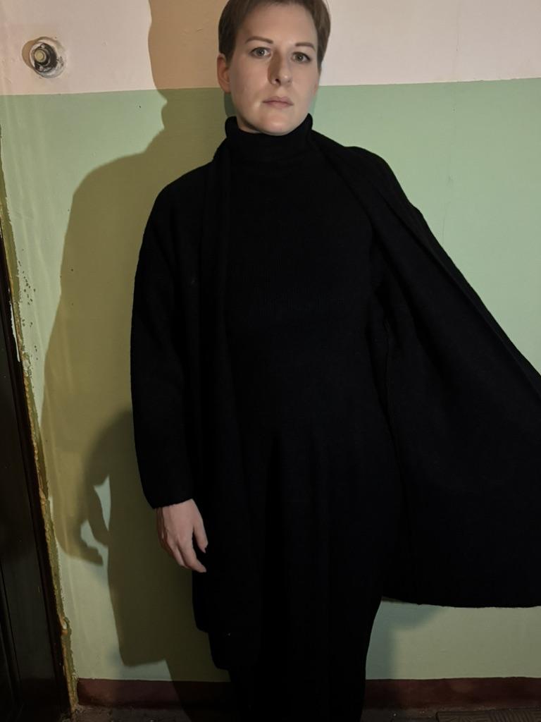 Как давно я не держала в руках настолько неудачную вещь! 1. Качество ткани - настолько низкое, что неприятно прикасаться. Самый дешевый пластик…жесткий, электризуется страшно (притягивает к себе даже пыль, а через 2 минуты выглядит как выцветшая тряпка). 2. Размер топа и кардигана соответствует российскому 40-44, а вот юбка (весьма внезапно!) размеру 50!!! При этом ткань слишком жесткая, чтобы лечь по фигуре и топорщится «ушами» в районе бедер и живота. Кардиган намного короче, чем на фото (юбка до щиколотки, а кардиган заканчивается в районе колена). 3. Швы. Огромные и грубые, на вороте топа впиваются в кожу, если подвернуть ворот - торчат наружу уродливыми шрамами. Если не подворачивать - ворот собирается неравномерной гармошкой. Никому не советую уродовать себя подобной вещью!!!