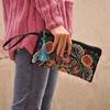 Винтажный квадратный кошелек для телефона — этническая цветочная вышивка, ремешок на запястье, стильный клатч для повседневного шика