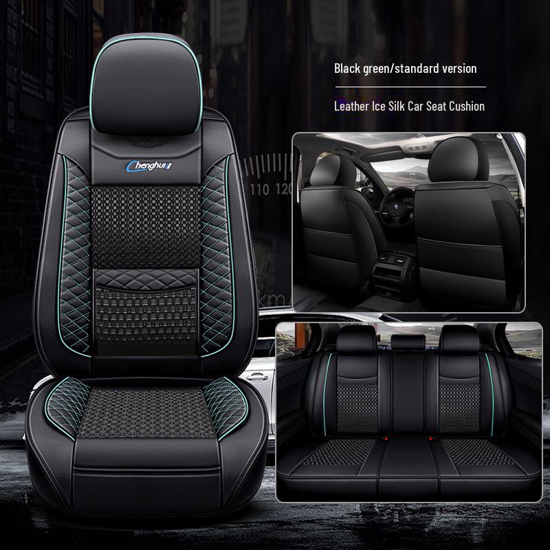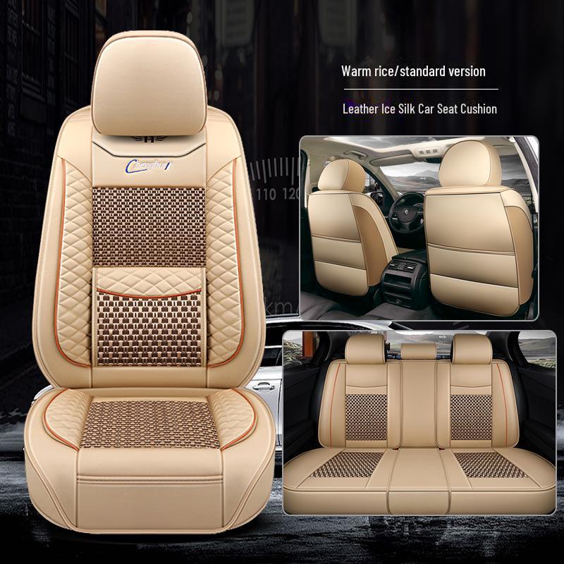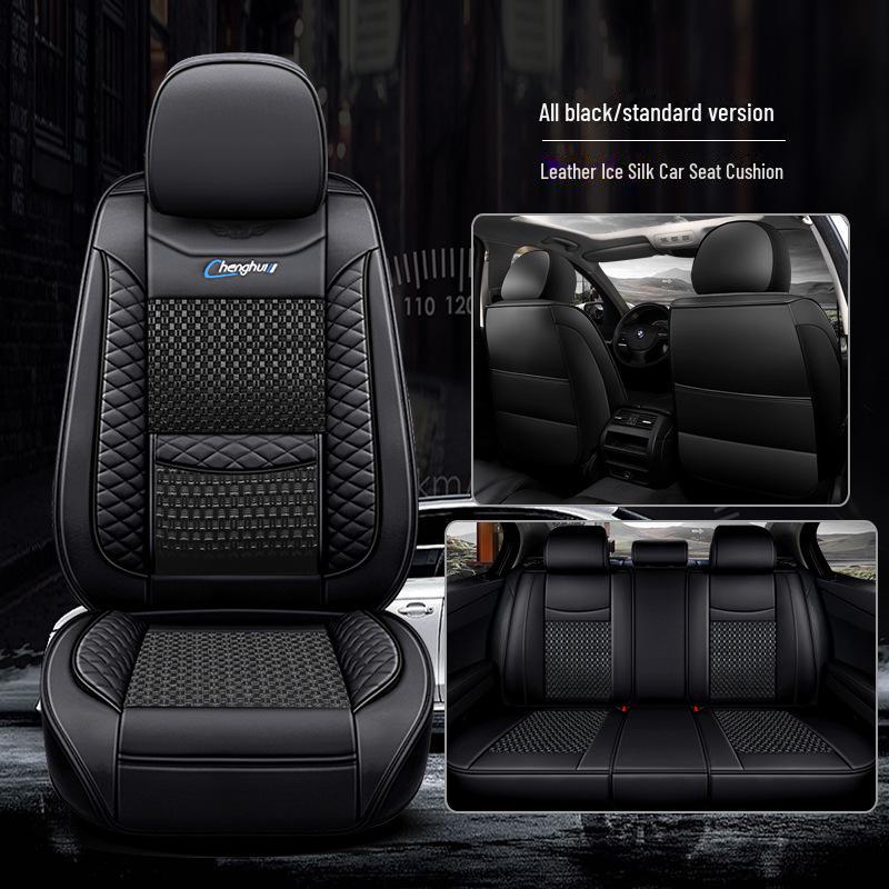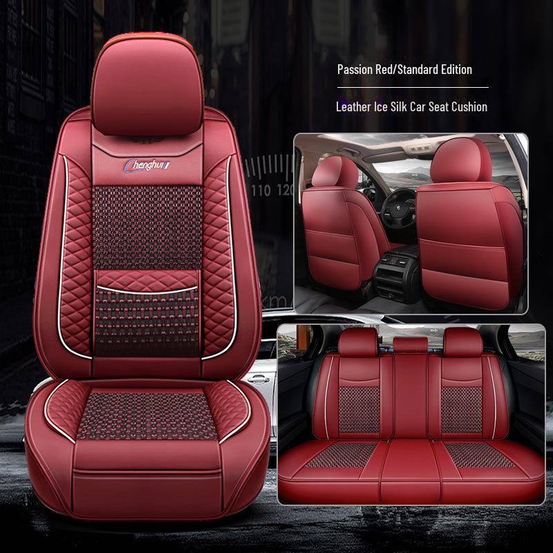 Кожаная подушка на сиденье автомобиля с полным покрытием - Ice Silk, универсальная посадка, пять мест