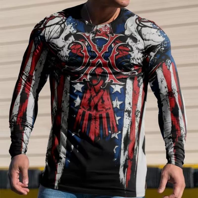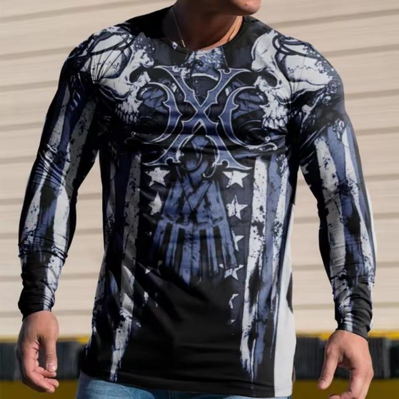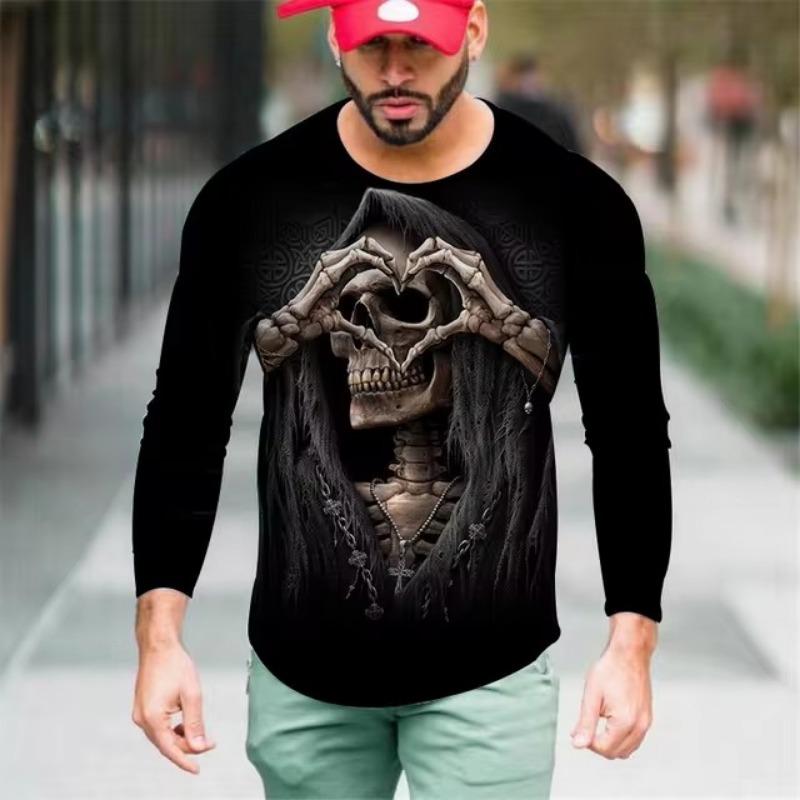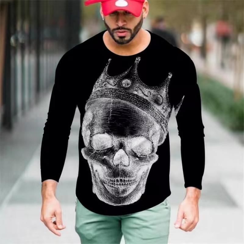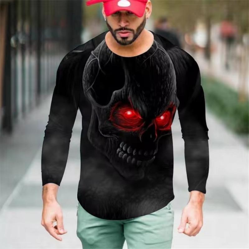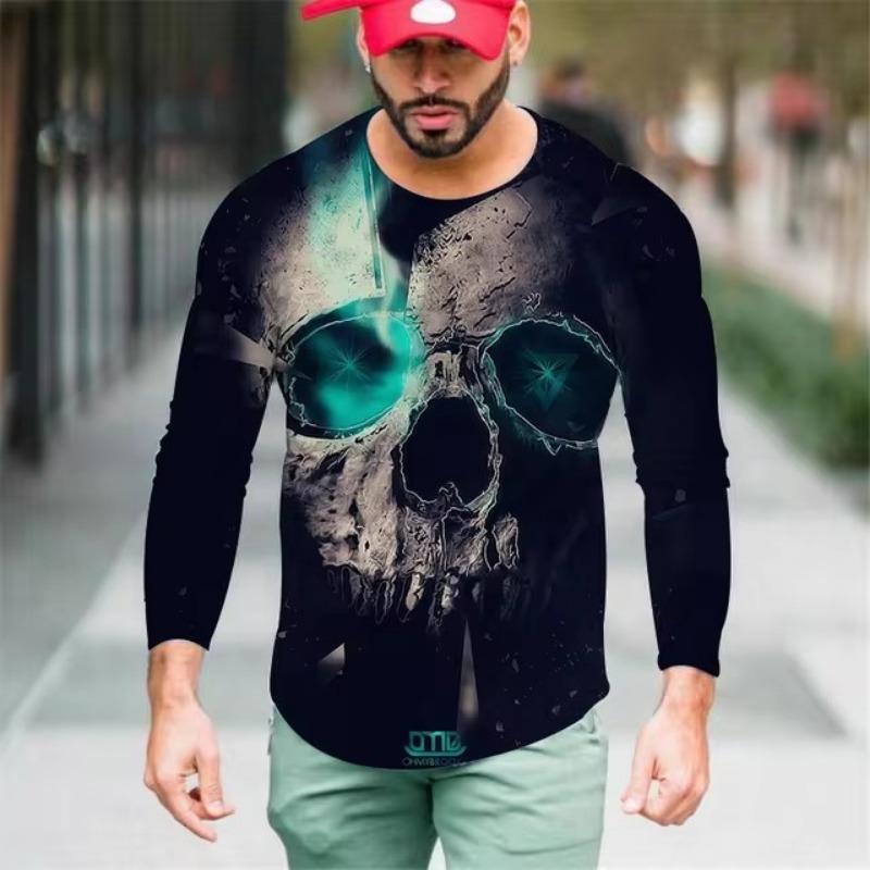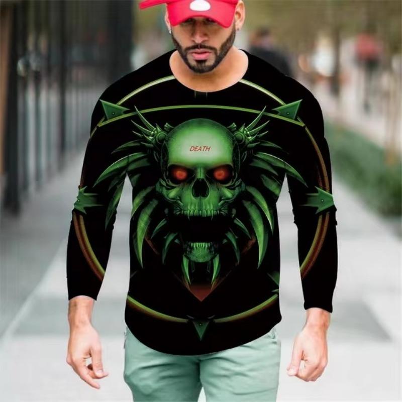Мужские футболки с цветным 3D-принтом, весна-лето, имитация полиэстера, свободные повседневные топы с круглым вырезом и длинным рукавом, футболка большого размера