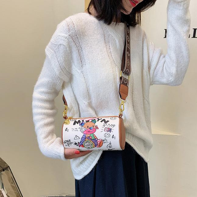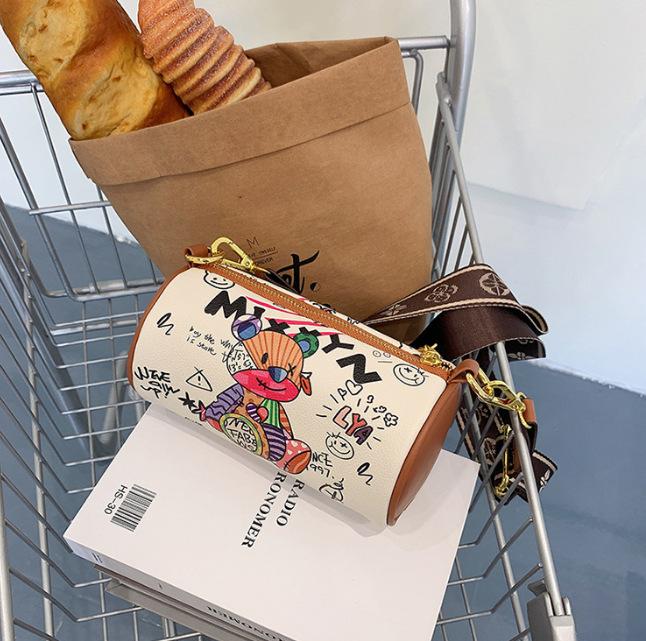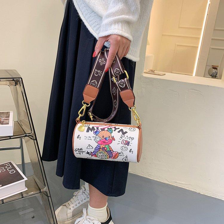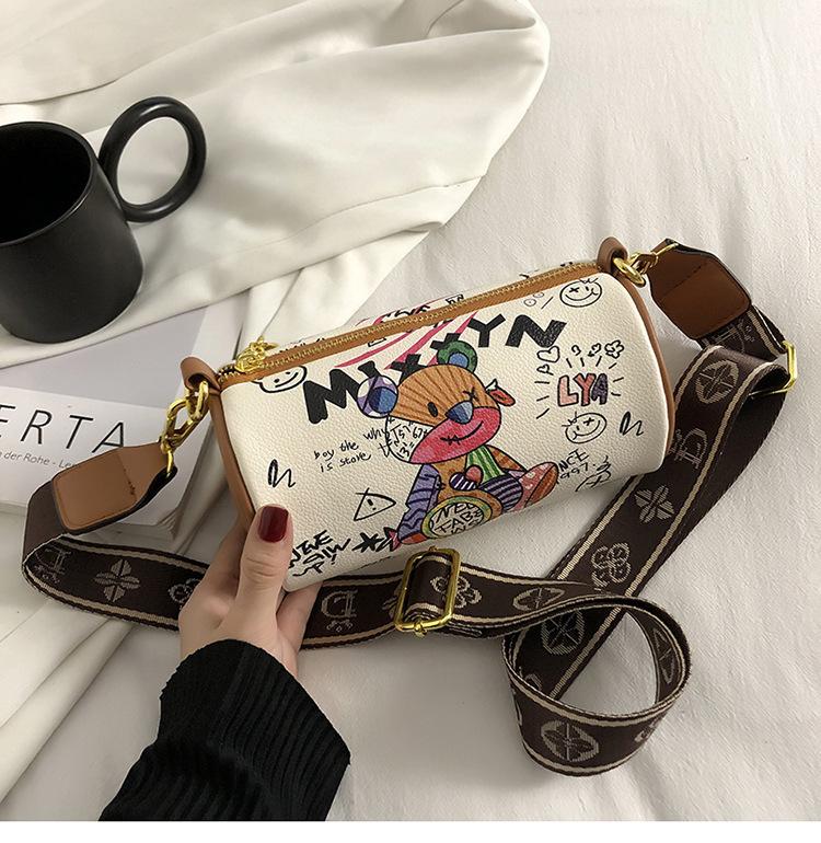 Сумка Niche Design 2024 года, новая летняя сумка-цилиндр с рисунком медведя и граффити подмышкой, модная широкополосная сумка через плечо на одно плечо