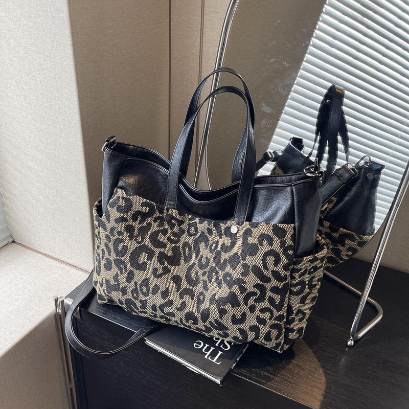 Сумка через плечо большой вместимости женская 2024 осень-зима новая трендовая корейская версия модная универсальная сумка с леопардовым принтом на одно плечо портативная сумка-тоут
