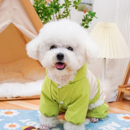 Согрейте и оформите стильного пушистого друга с помощью этого зимнего пальто для питомца. Дизайн с цветными блоками добавит милый и привлекательный штрих, выделяя вашего питомца.. Изготовленное из мягкой ткани, это пальто удобное и приятное для кожи, гарантируя вашему питомцу тепло и уют.. Конструкция с капюшоном на четыре лапы обеспечивает отличную защиту и изоляцию, чтобы вашему питомцу было комфортно.