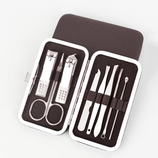 Компактный и портативный дизайн: Маникюрный набор из 8 предметов поставляется в стильном защитном футляре, обеспечивающем удобство переноски и надежное хранение для ухода за ногтями в дороге.