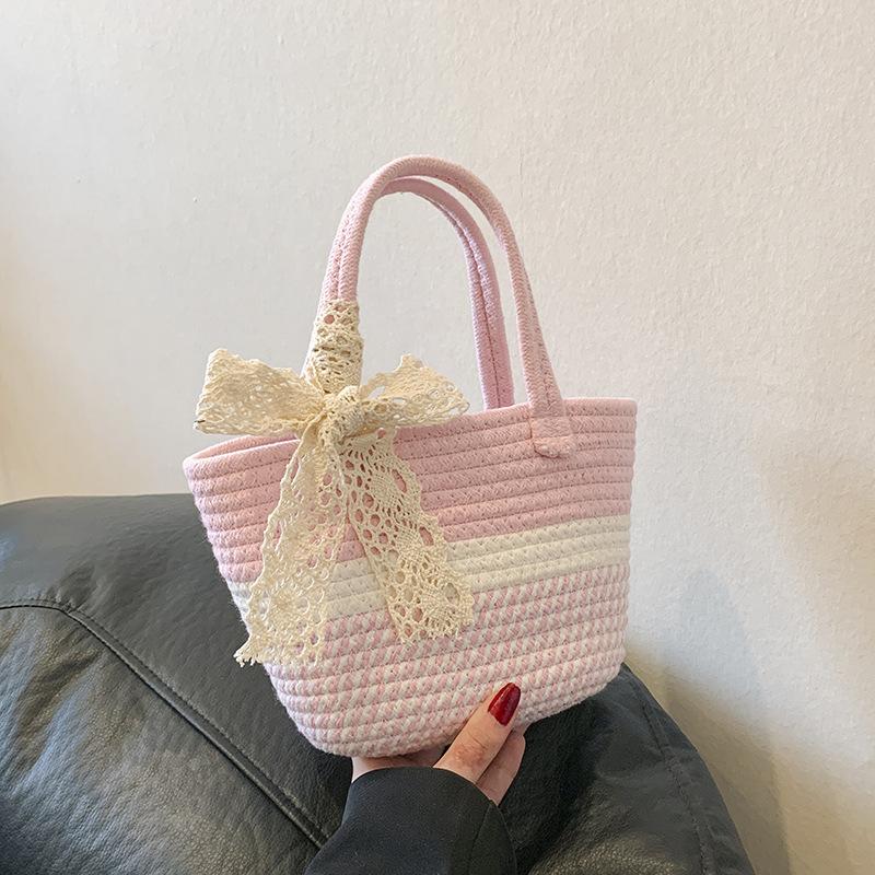 Винтажная полосатая хлопковая плетеная сумка 2024 года, новая нишевая ручная соломенная сумка для отпуска на пляже, маленькая ручная корзина