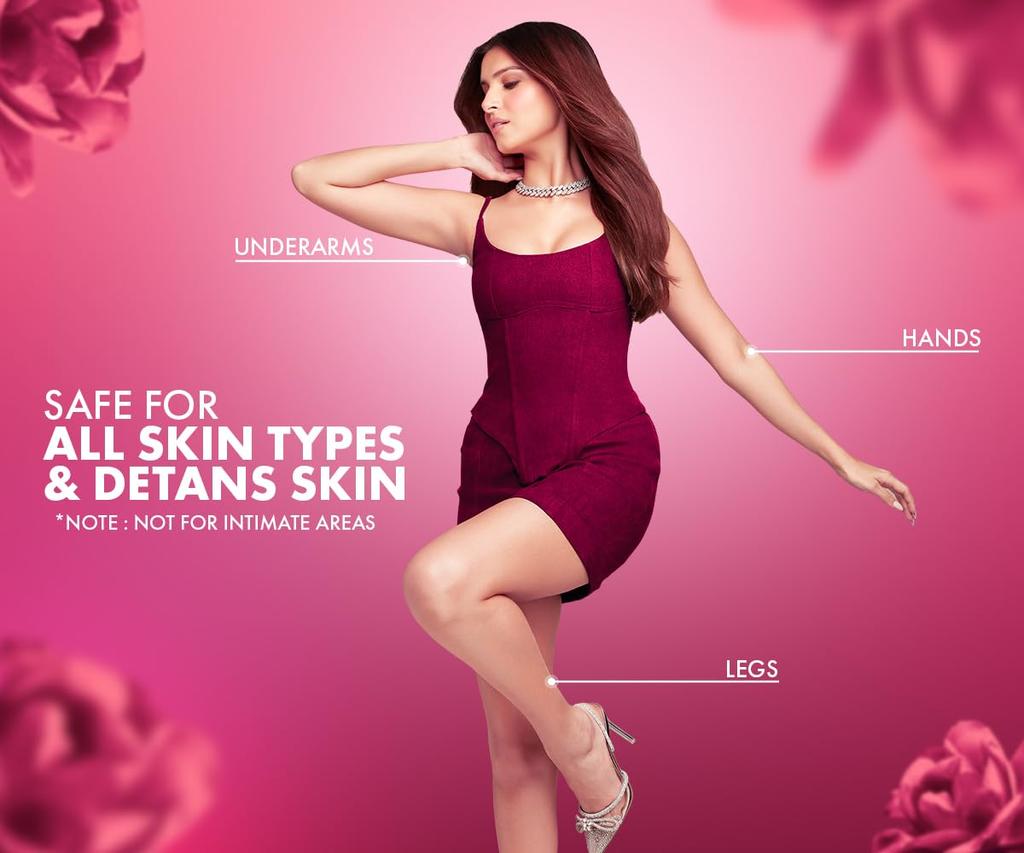 С натуральными экстрактами: Спрей для депиляции Urban Yog для женщин изготовлен из натуральных экстрактов и оставляет аромат розы.. Спрей помогает сохранить кожу увлажненной и эластичной после использования.
