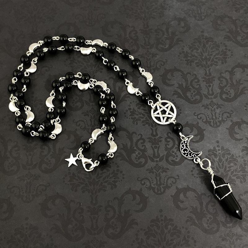 Языческие четки, четки, ожерелье с пентаграммой из черного оникса, ожерелье в стиле традиционной готики с бусинами