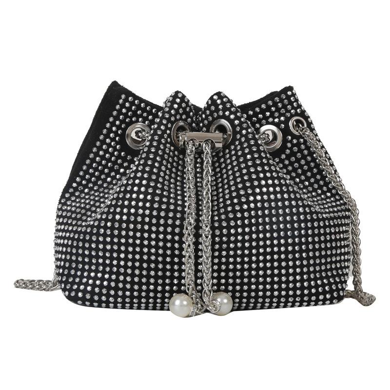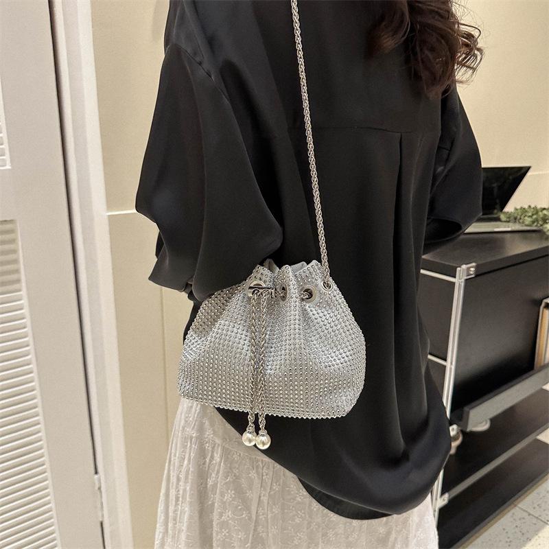 Сумка-ведро с завязками на цепочке, женская, новинка 2024 года, яркая, украшенная стразами, сумка-мессенджер с бриллиантами, популярная, высокого класса, сумка-мессенджер с цепочкой