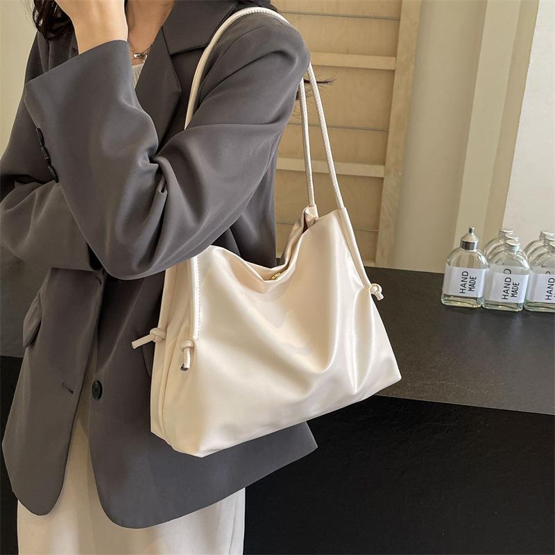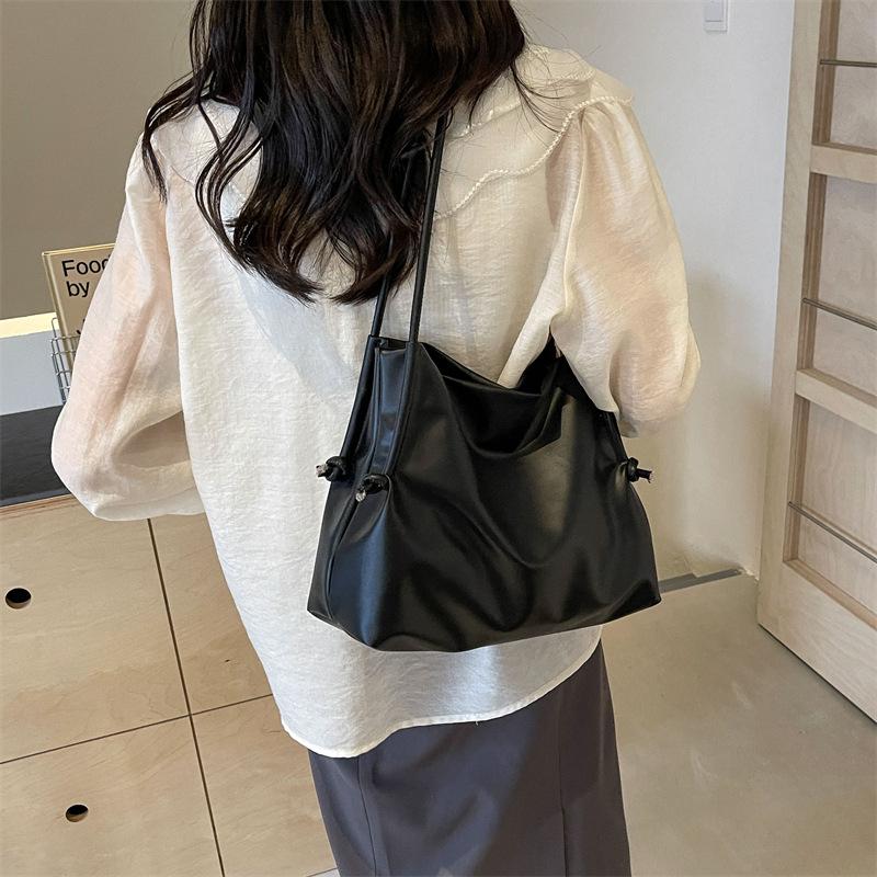 Сумка для поездок на работу в стиле ретро, вместительная, подмышечная, новинка 2024 года, женская сумка, однотонная, мягкая, сумка-ведро, простая сумка через плечо