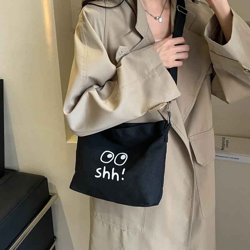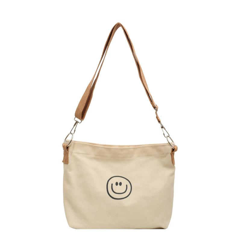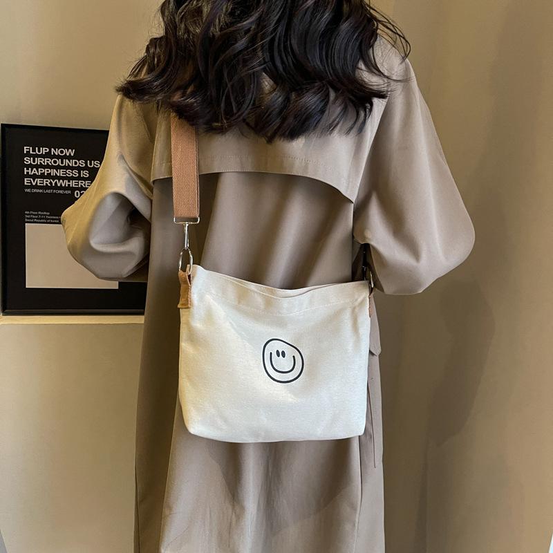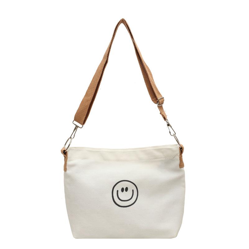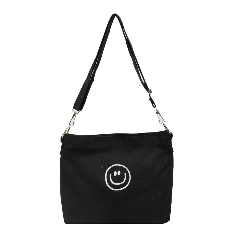 Новая сумка через плечо из холста с принтом смайликов, простая модная сумка-мессенджер с текстурой, маленькая квадратная сумка для шопинга
