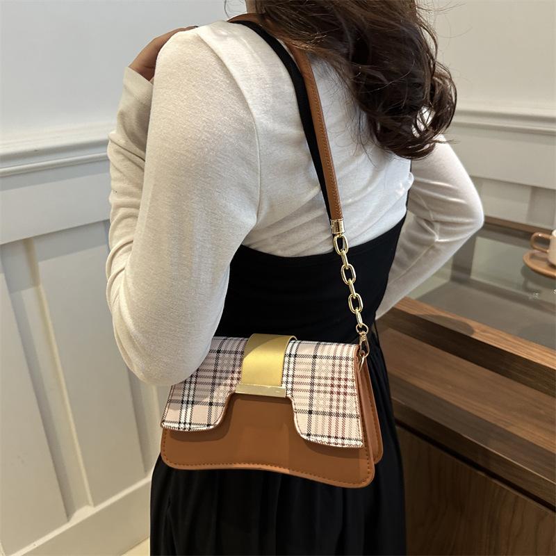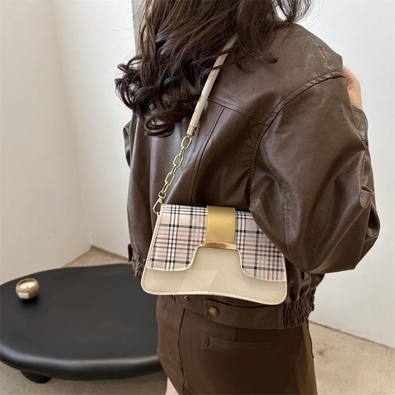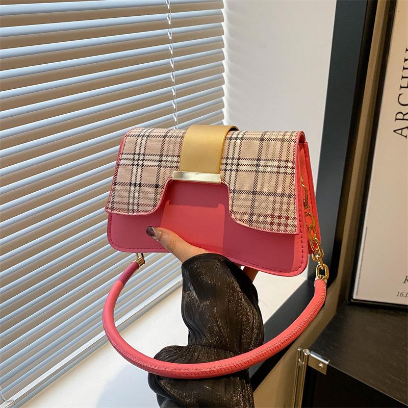 Текстурная трендовая сумка 2024 года, новая модная сумка-седло, маленькая квадратная сумка, универсальная, темпераментная, клетчатая, женская сумка-мессенджер