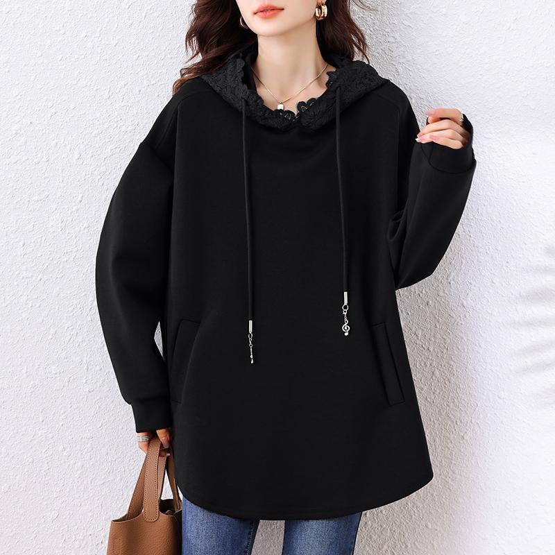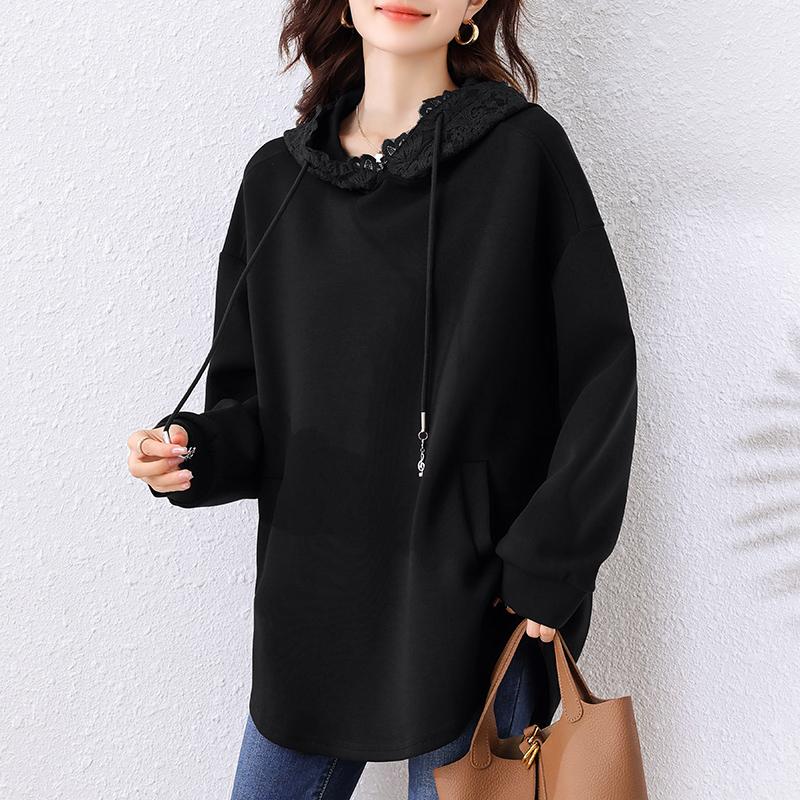 DIMANAF 2024 Плюс Размер Осенняя хлопковая футболка женская новая базовая с капюшоном пуловер с длинным рукавом свободные модные топы футболки