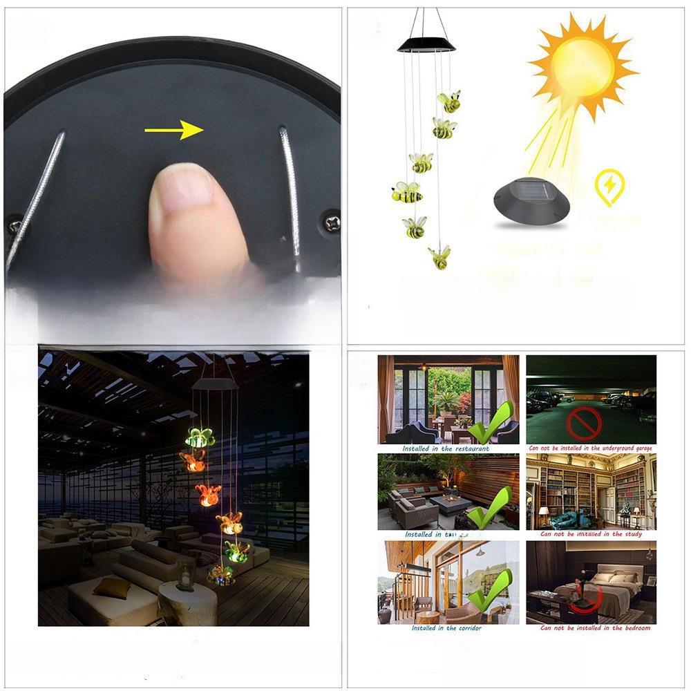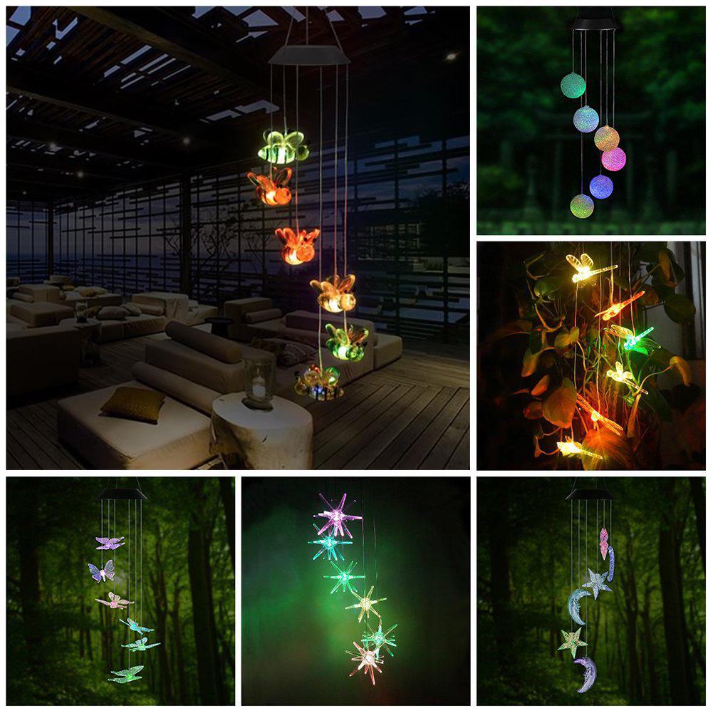 Солнечный ветряной колокольчик Колибри Цвет меняющий светодиодный уличный садовый декор